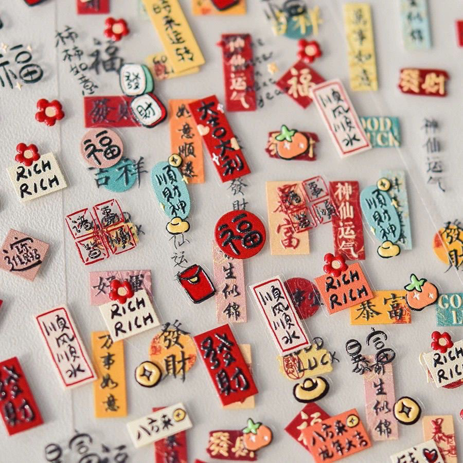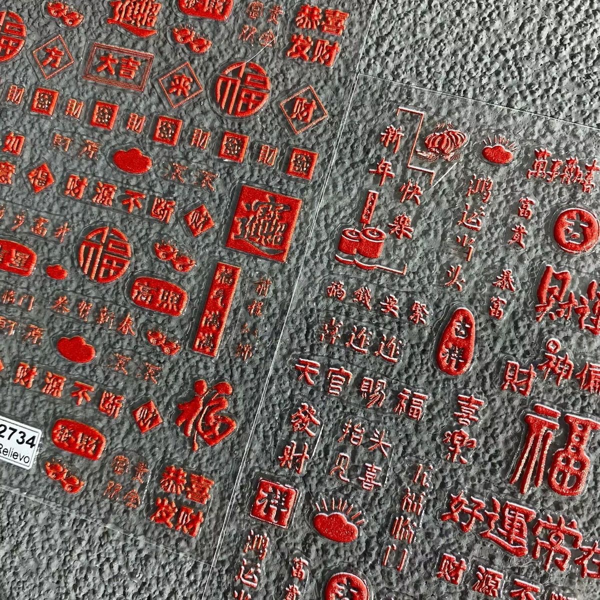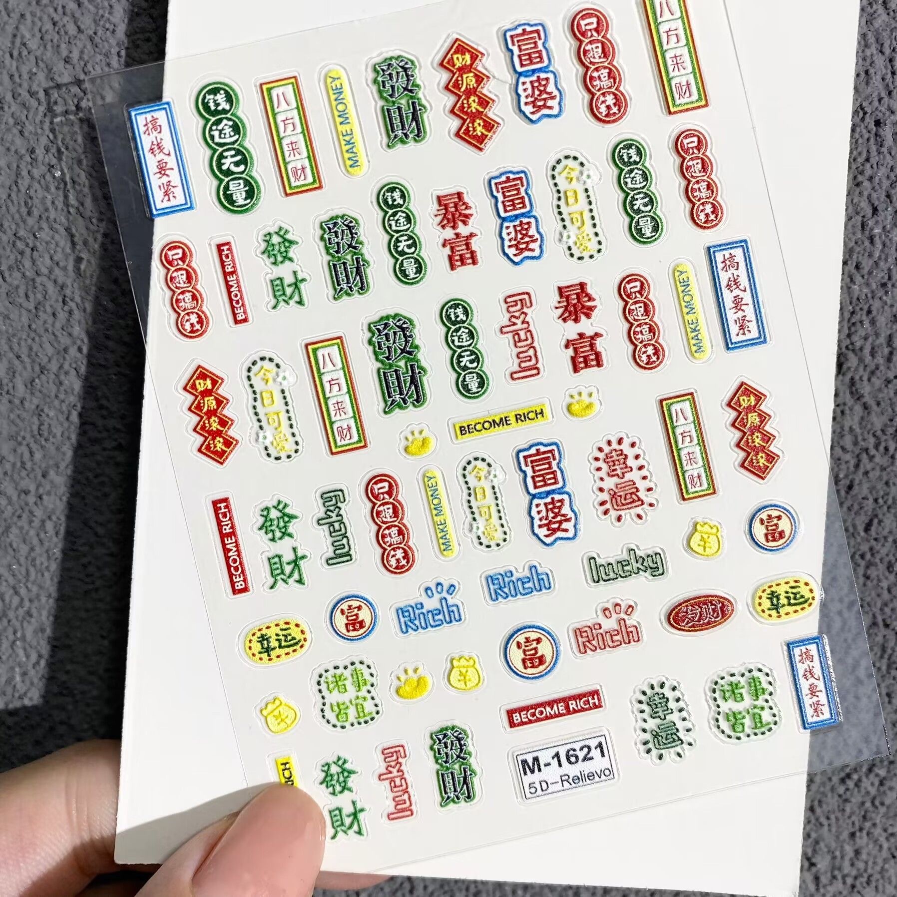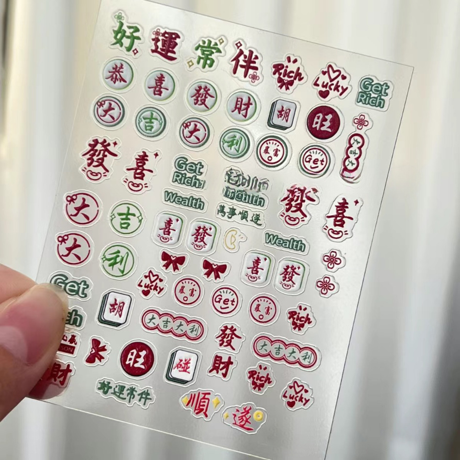 新春发财美甲贴纸浮雕暴富大吉大利指甲贴纸笔杆水杯相机装饰背胶