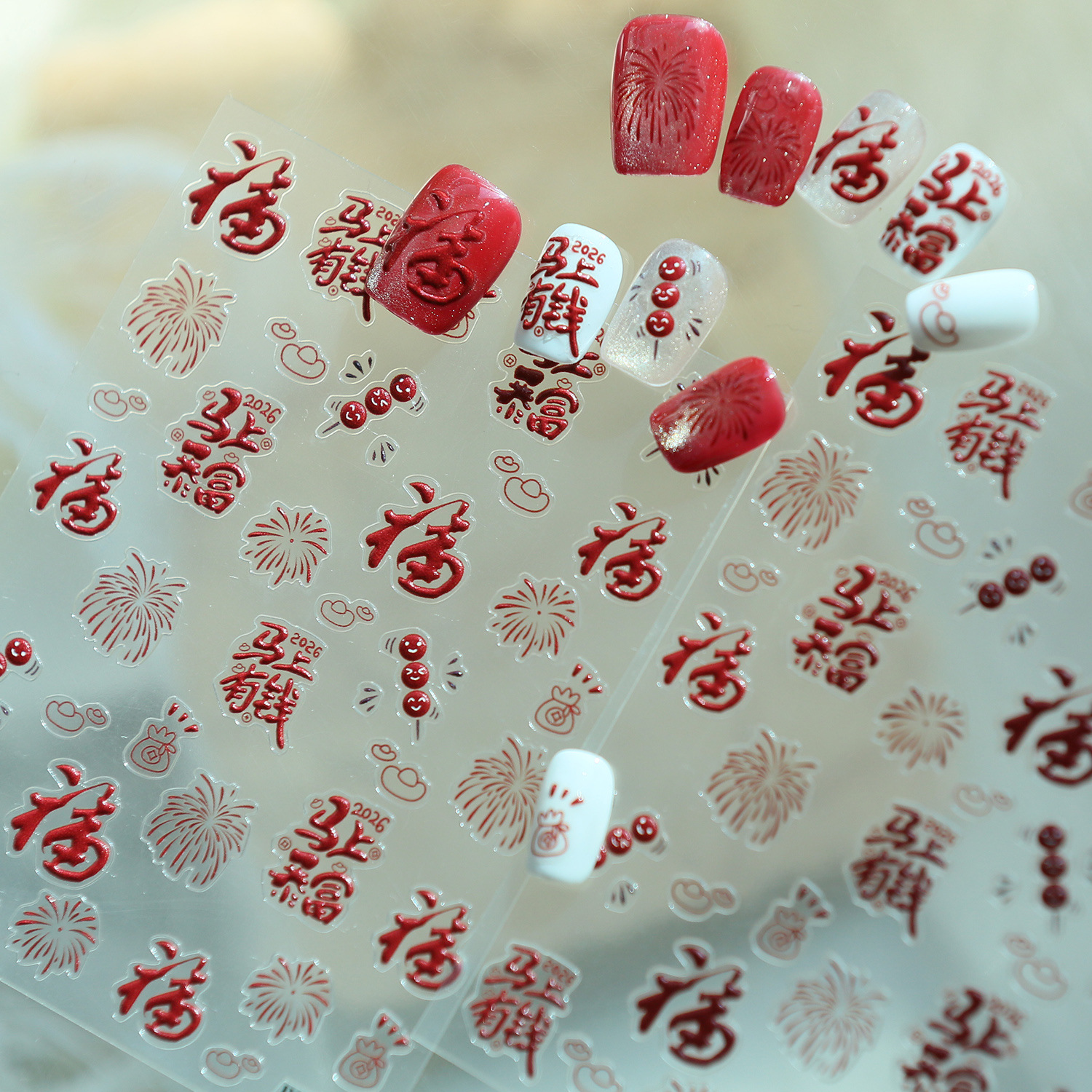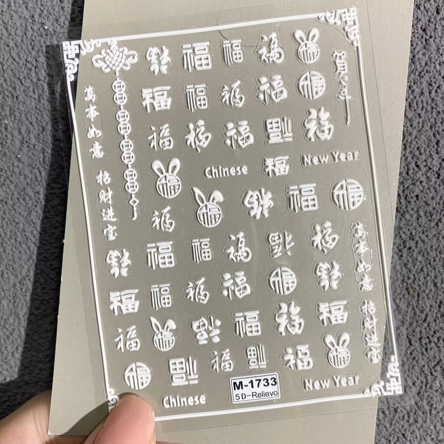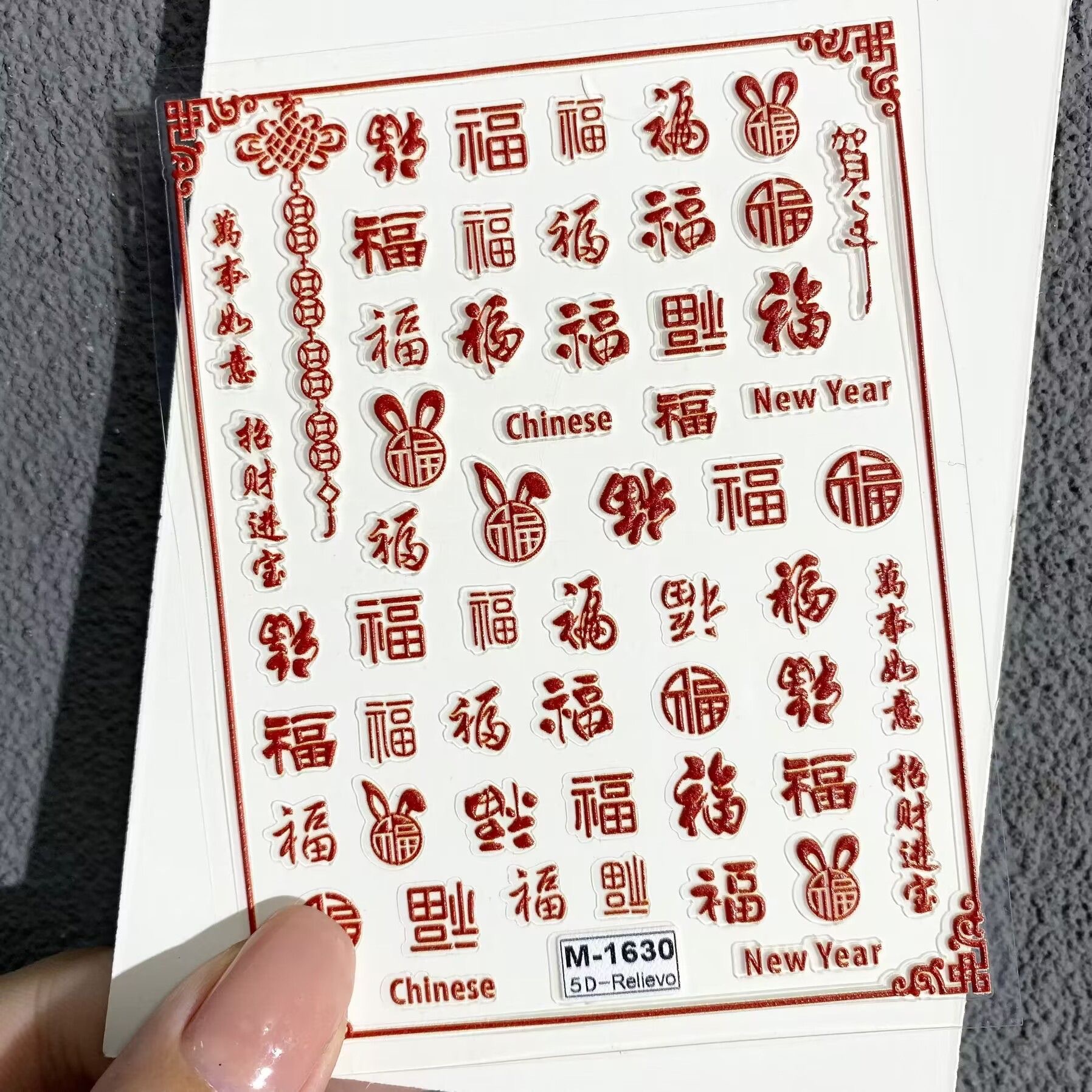新春美甲贴纸新年暴富发财福字锦鲤国风装饰立体浮雕卡通指甲贴纸