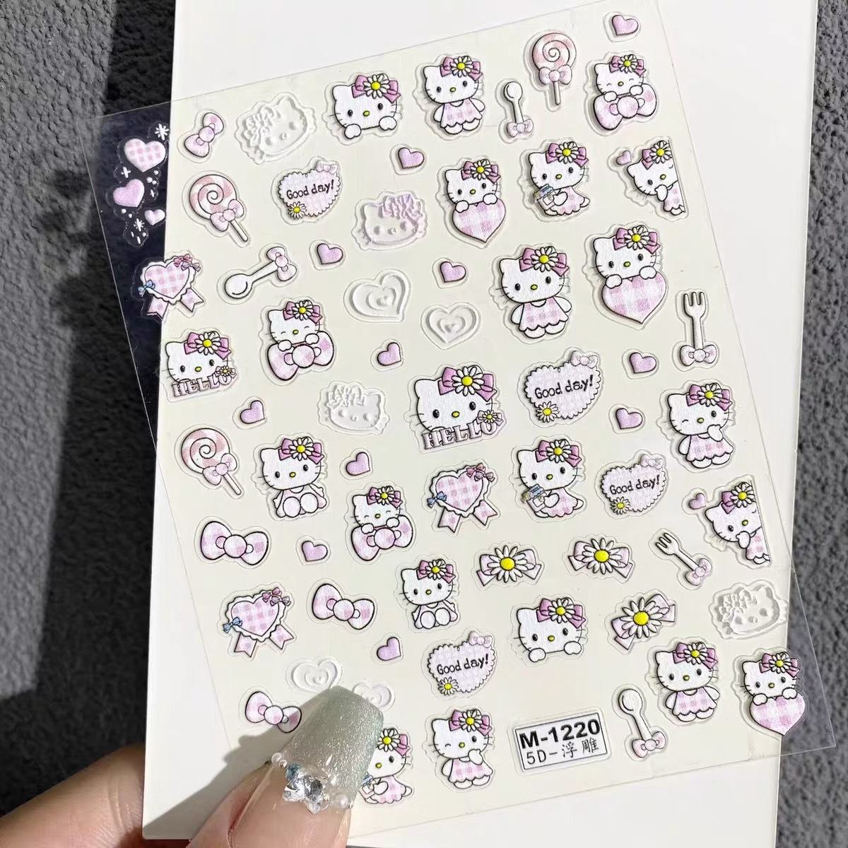 新しいかわいい漫画立体浮き彫りネイルシールkitty格子ペン棒裏ゴム爪シールアクセサリー
