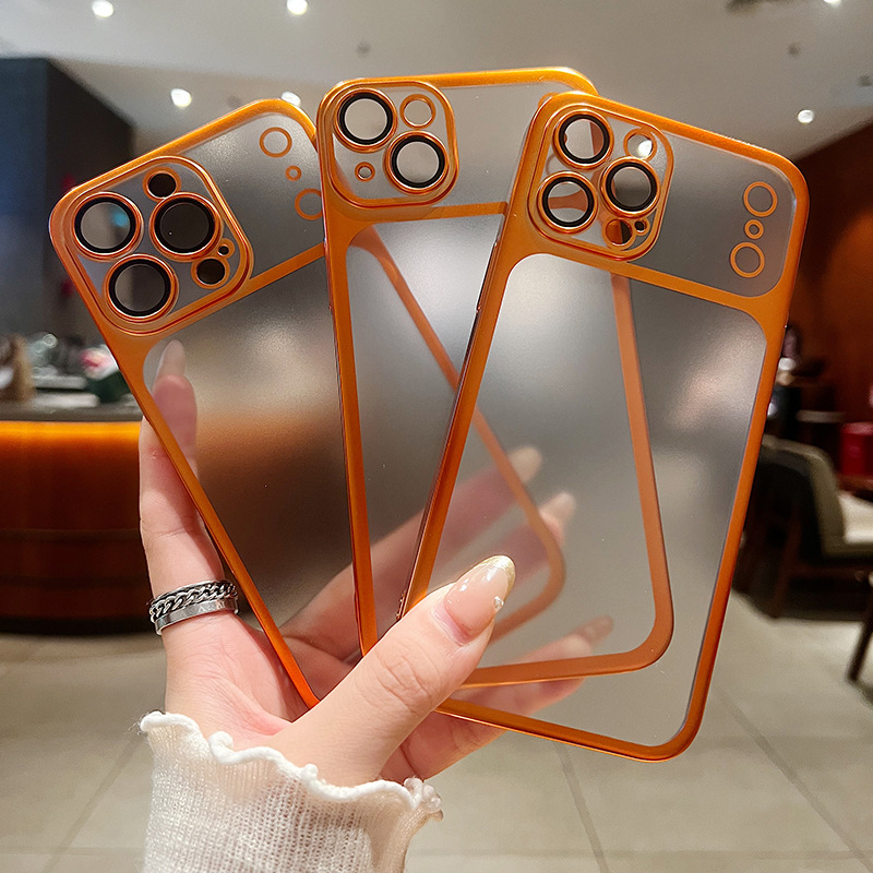 活力橙磨砂肤感PC手机壳秒变17电镀透色带镜头膜保护套适用iPhone