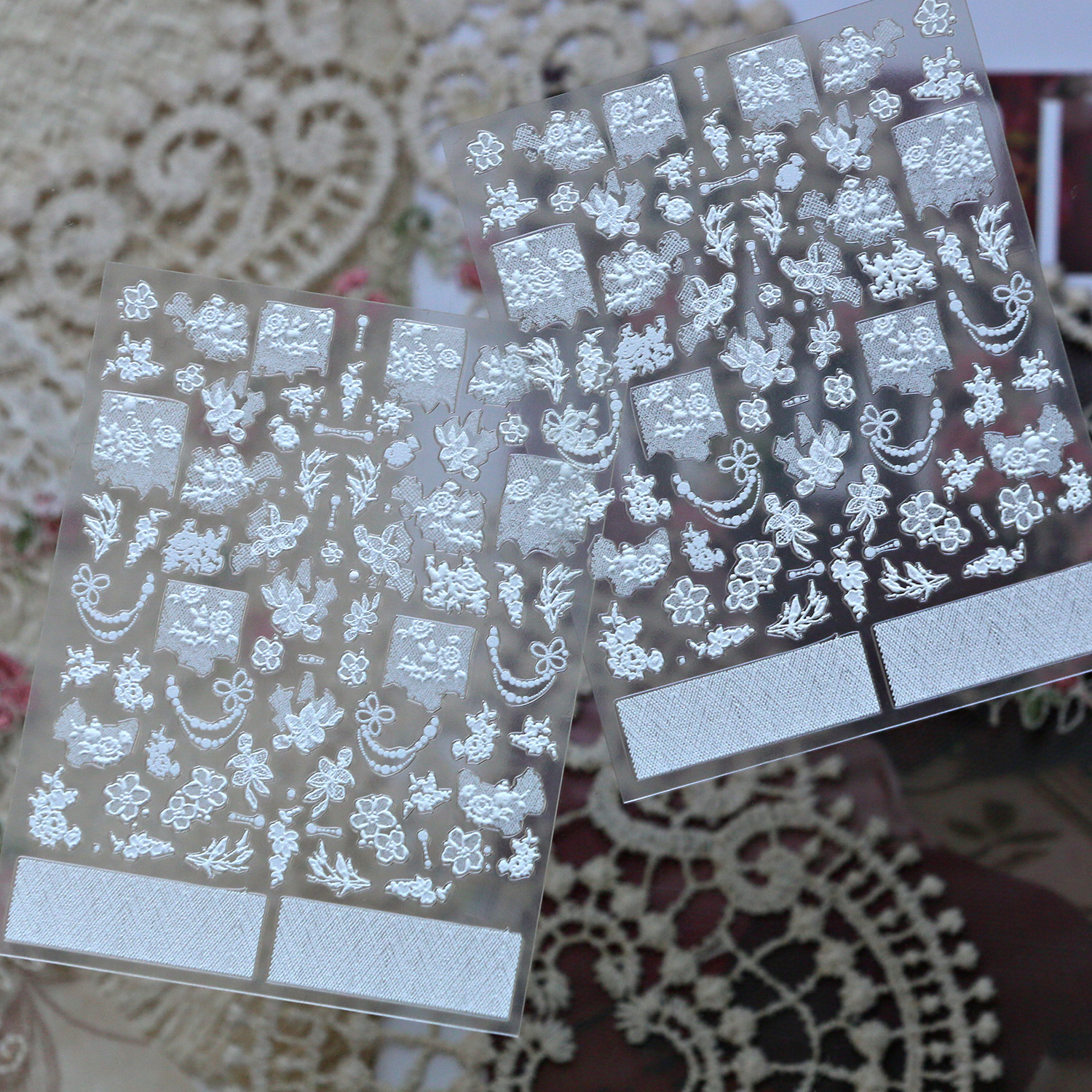 優しい純欲日系復古透かし彫りレース愛爪シール浮き彫り花縞ネイルシール