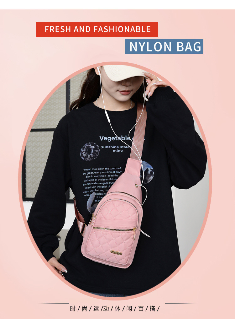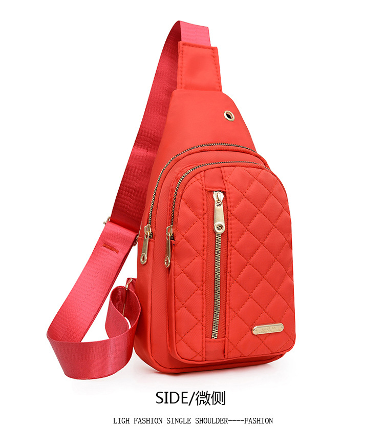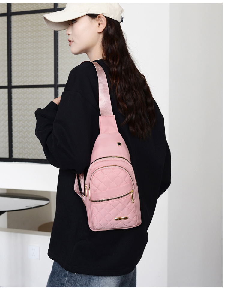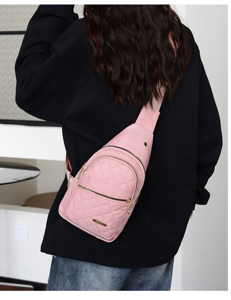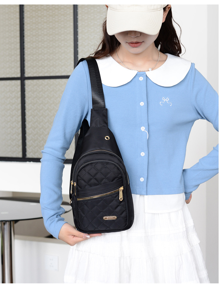 菱格刺繍線女性胸バッグ大容量純色カップル斜めショルダーバッグオックスフォード布スポーツカジュアルショルダーバッグ