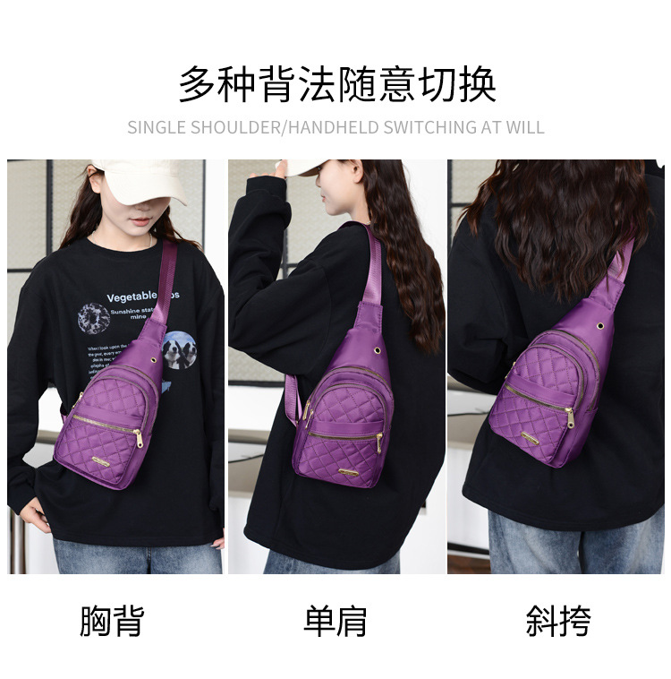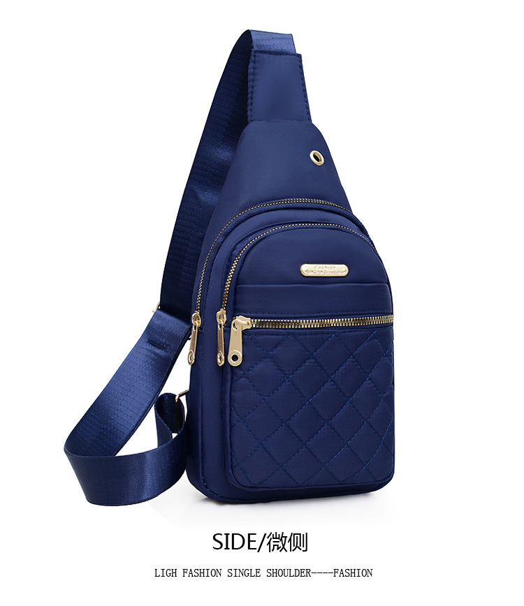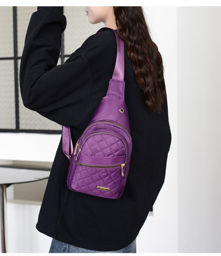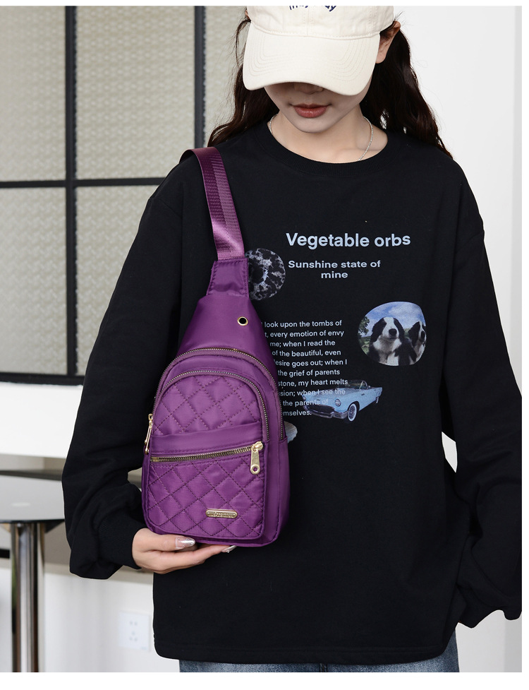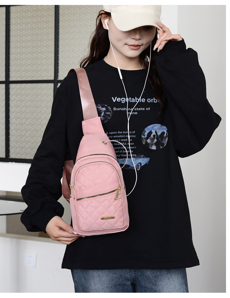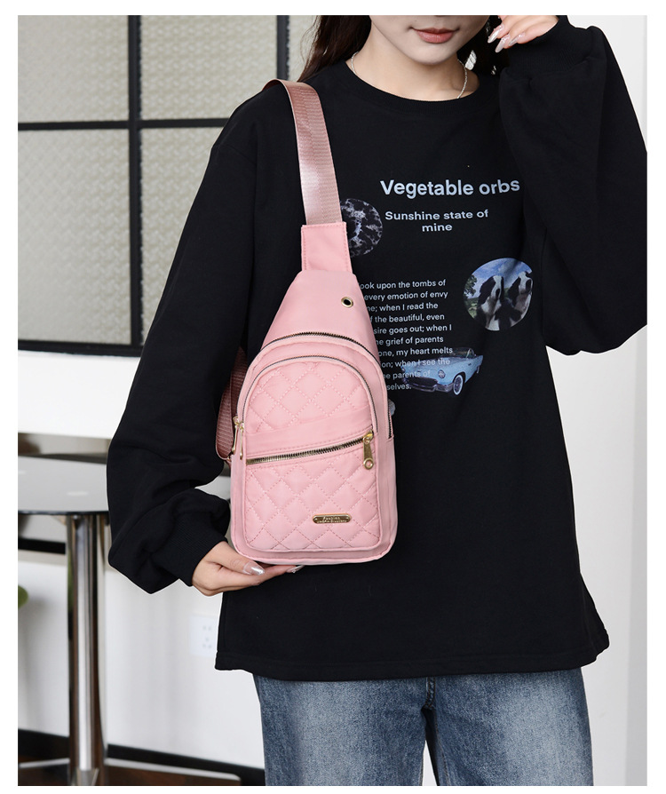 菱格刺繍線女性胸バッグ大容量純色カップル斜めショルダーバッグオックスフォード布スポーツカジュアルショルダーバッグ
