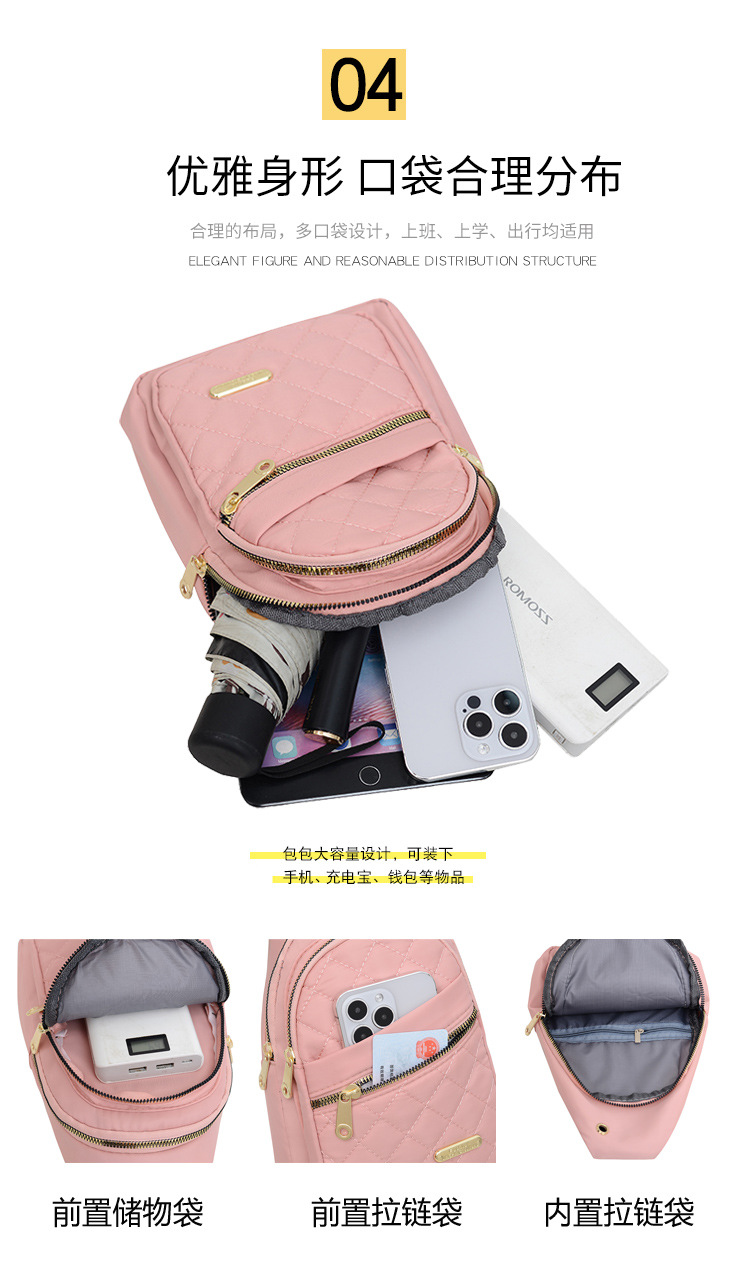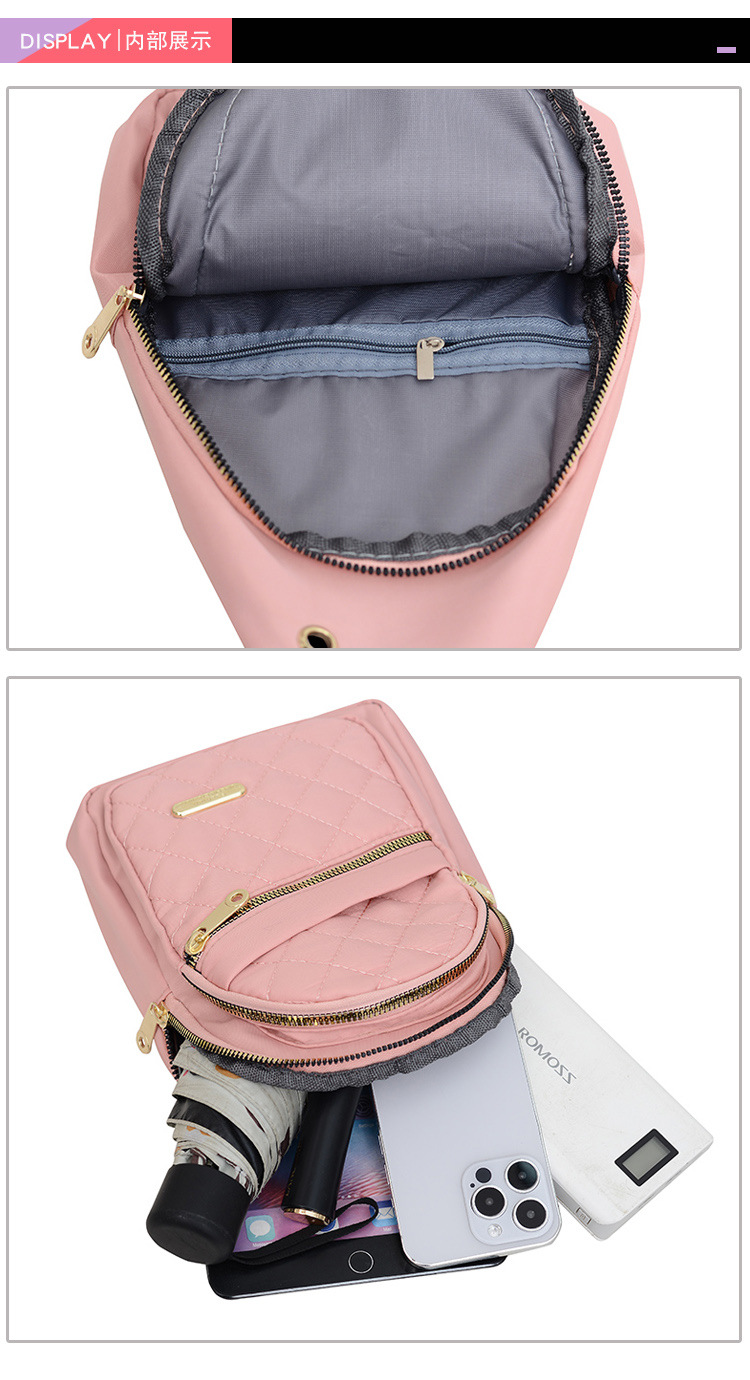 胸のバッグの女性の新型のカジュアルなファッションはナイロンの布のカバンの軽やかな斜め掛けの女性のリュックサックの小さい肩の前で潮を包みます。