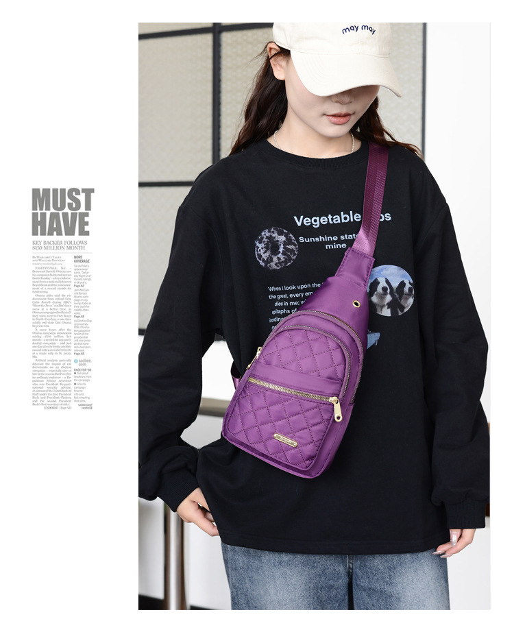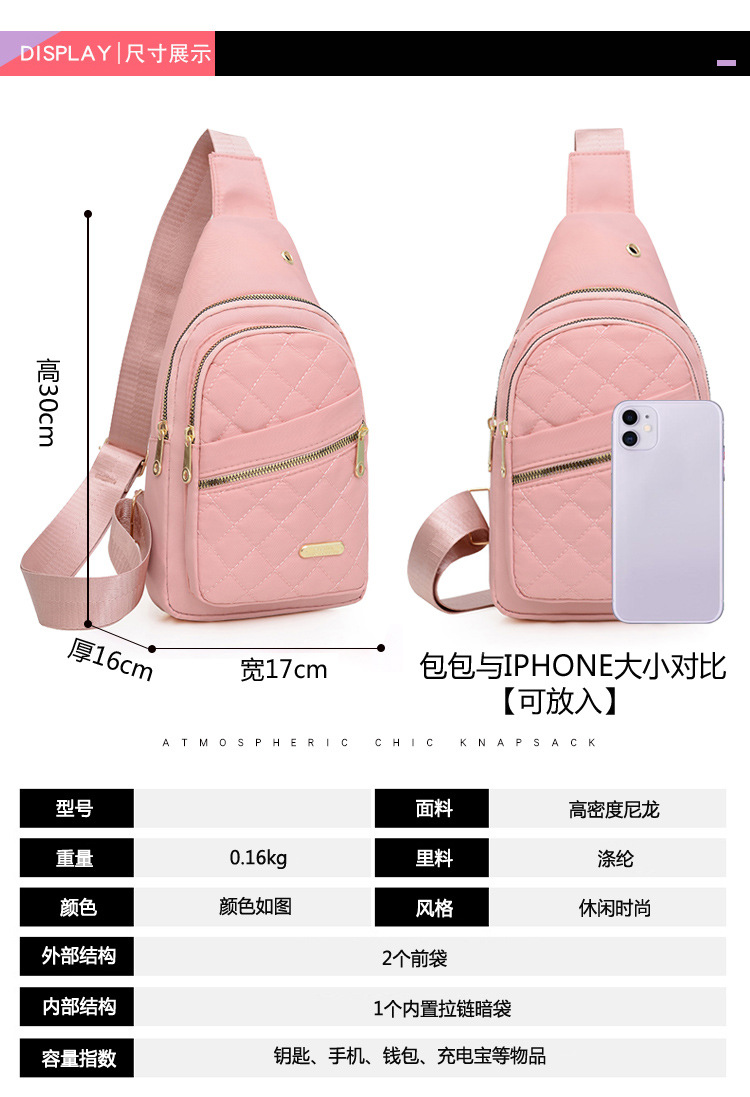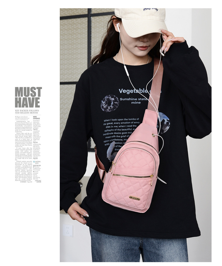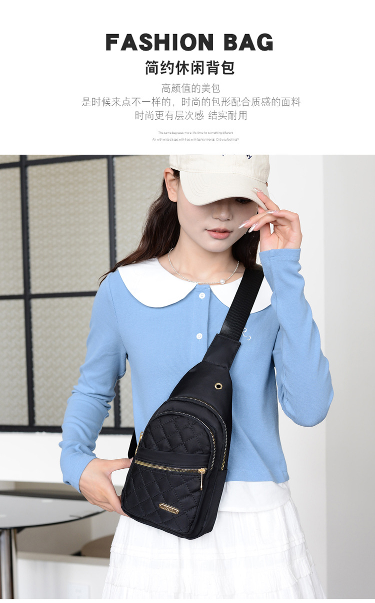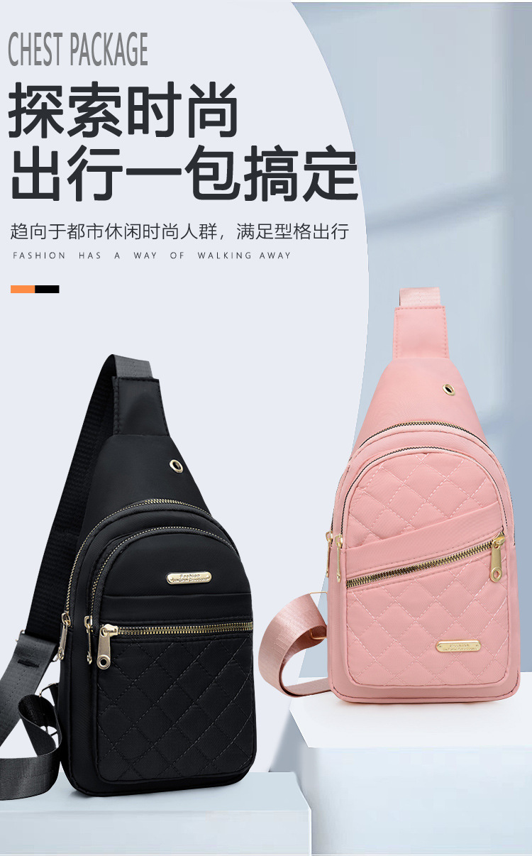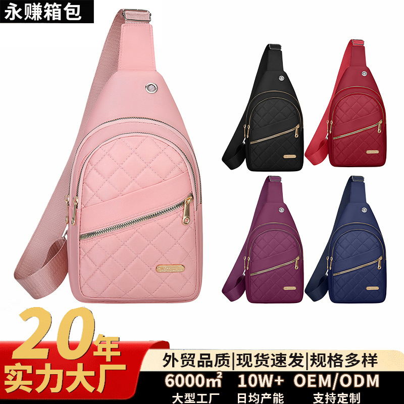 跨境新款绣线女士胸包牛津布休闲时尚便携腰包户外通勤简约斜挎包