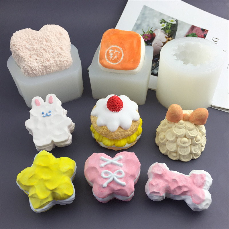 名称:DIY小猫薯条猫咪小羊饭团可颂面包 手工蛋糕滴胶香薰蜡烛硅胶模具