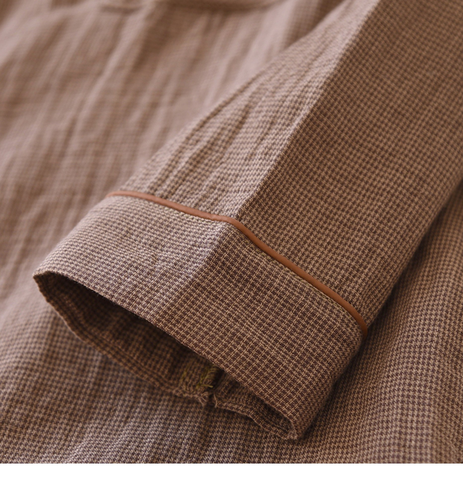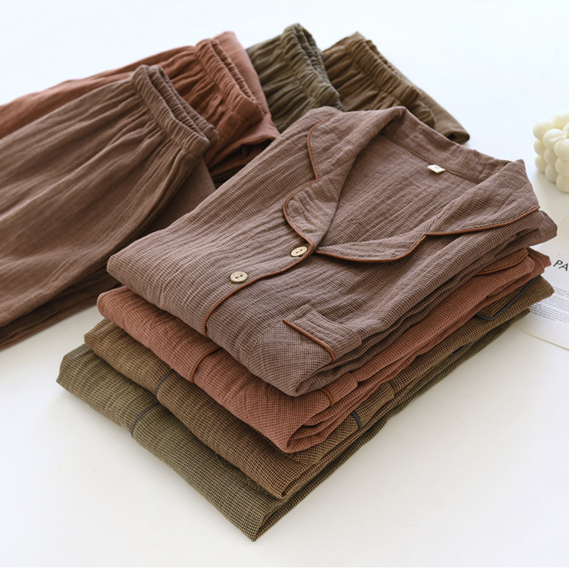 春秋カップル色織純綿パジャマシンプル長袖カーディガンホームウェアセット二重ガーゼ男女ゆったり