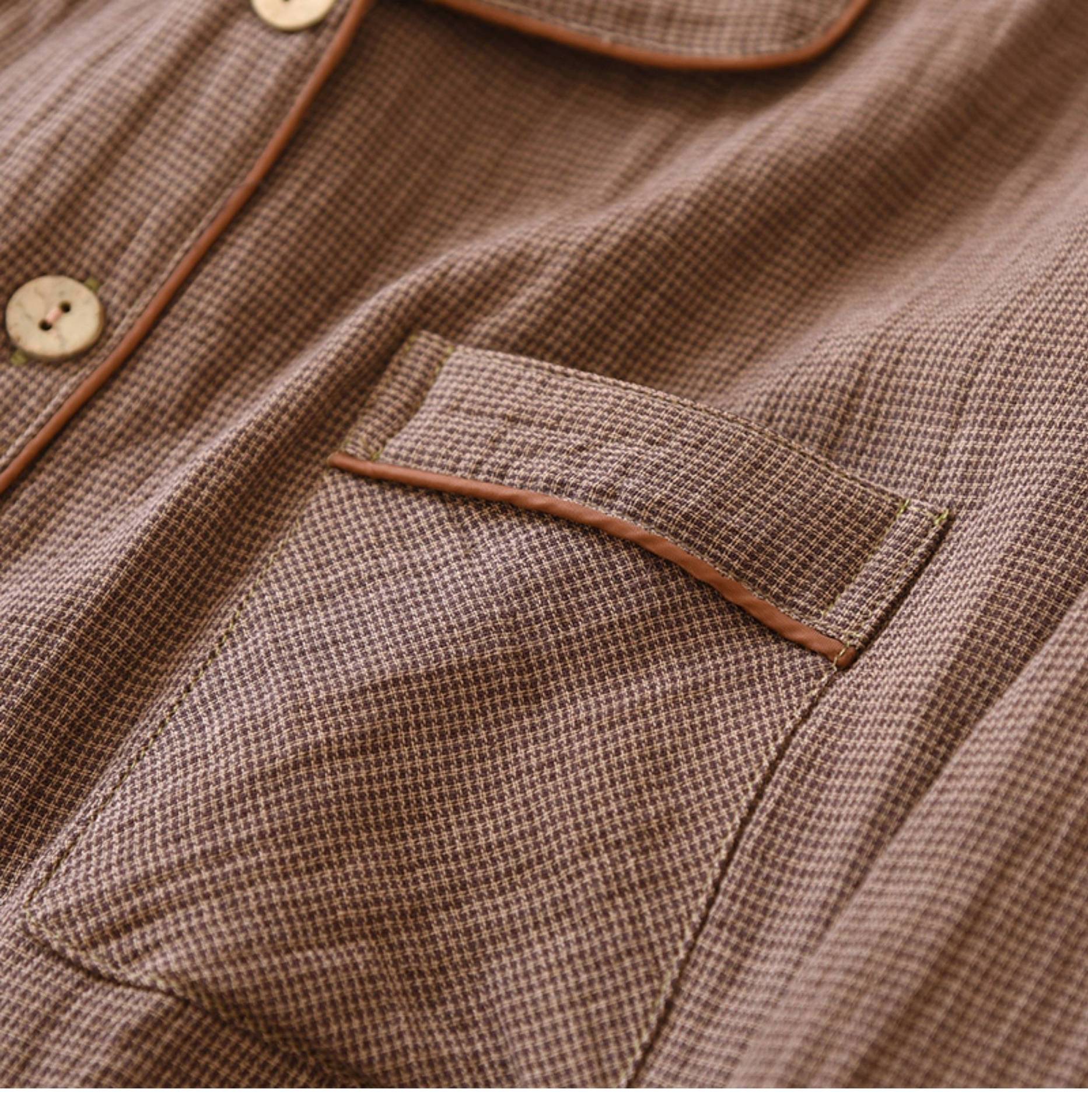 ちりめんホームウェアメンズ綿質二重ガーゼパジャマお父さんセット長袖長ズボン大きいサイズセット