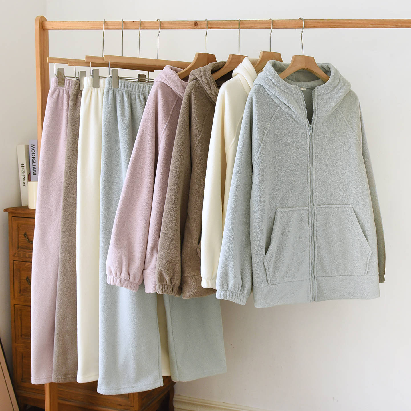 秋冬季情侣摇粒绒睡衣拉链家居服套装加厚法兰绒男女可外穿休闲