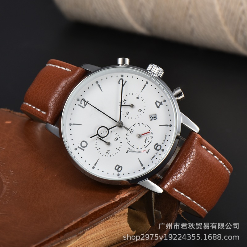 2024国境を越えた新製品男性カジュアル熱麦合金ケース5針全機能円形ベルト腕時計メーカーのソース