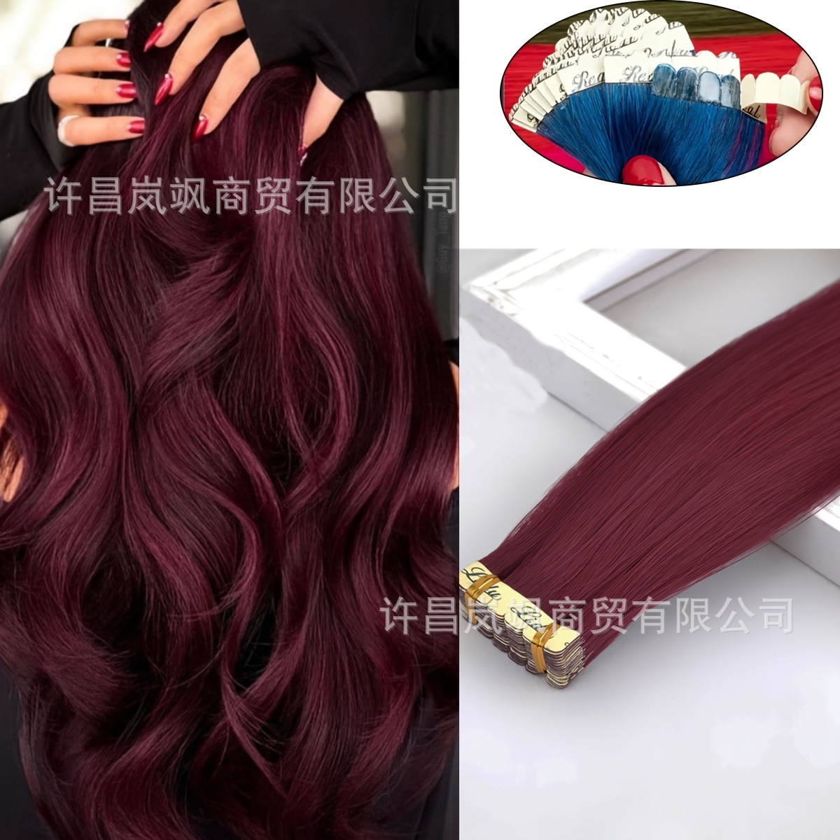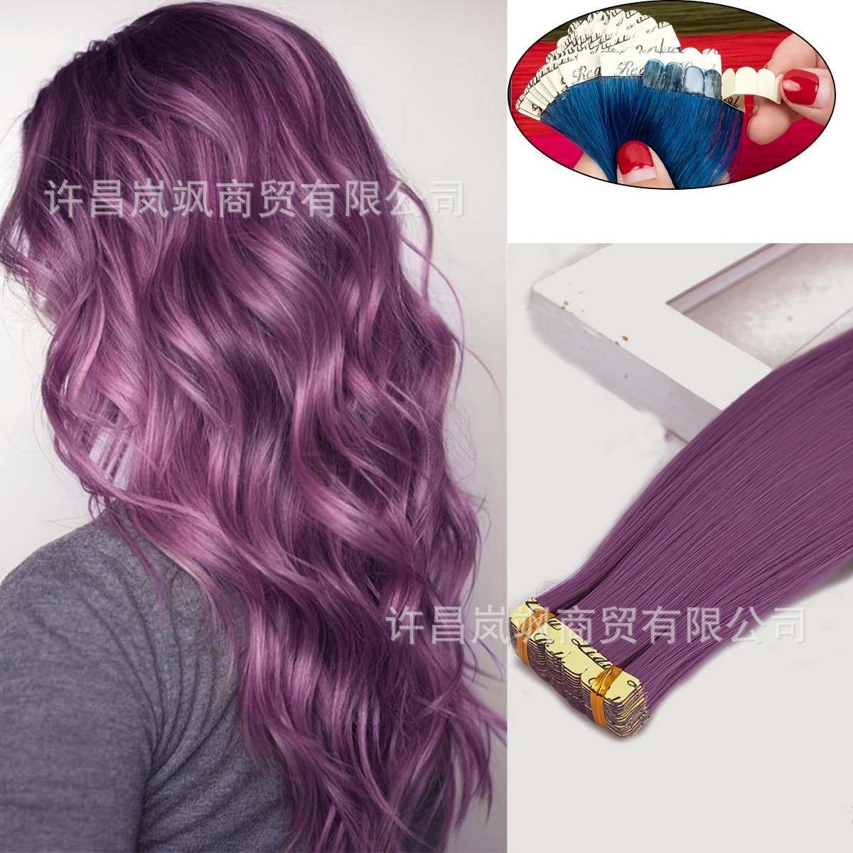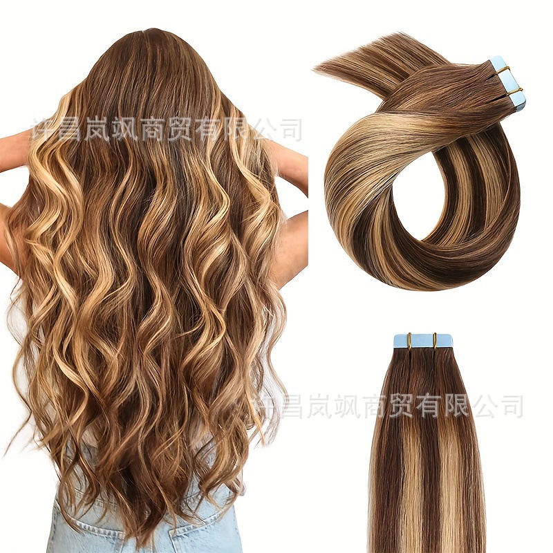 クロスボーダーカラフルなPUヘアエクステンション、ヨーロッパとアメリカのシームレスヘアエクステンション、テープ式ヘアエクステンション、接着フィルムヘアエクステンション卸売