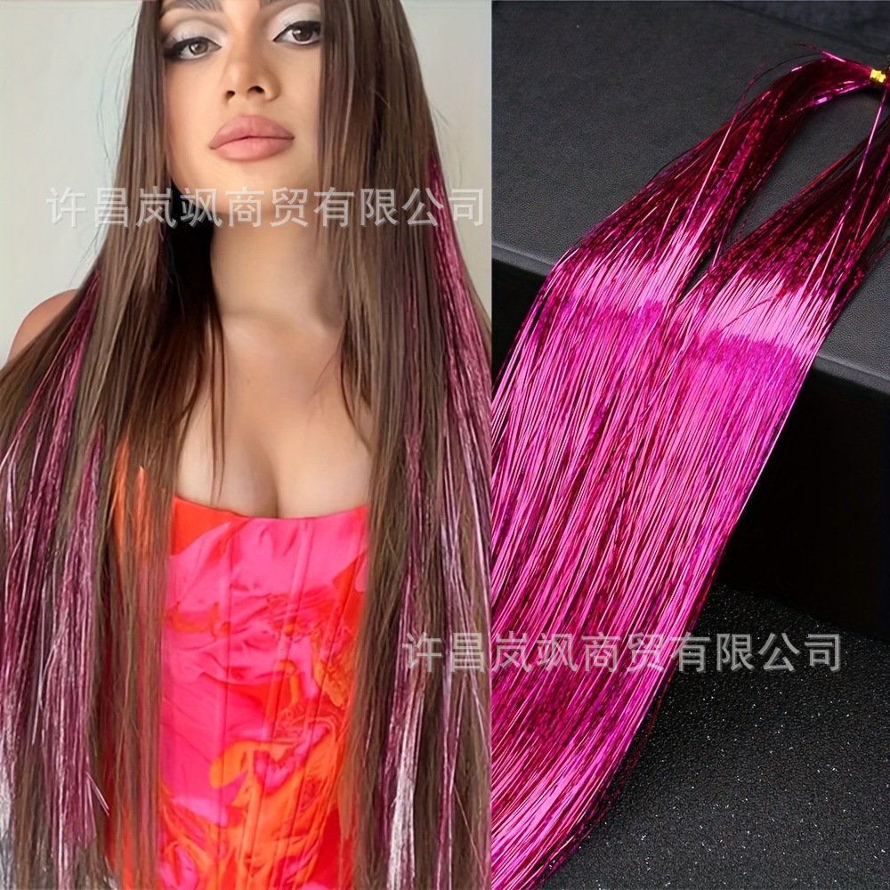 国境を越えた売れ筋レーザーシルクヨーロッパとアメリカのカラフルな光沢のあるゴールドとシルバーのレーザーウィッグカラフルなシルクヘアエクステンションメーカー在庫あり