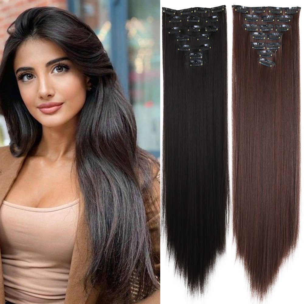 外国貿易のかつらの女性の16カードの髪のまっすぐな髪の切れの再送の切れの7セットの化繊のカードの髪の欧米の女性の髪