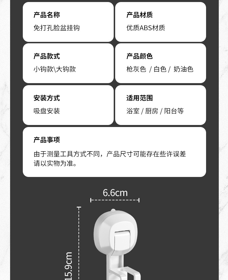 吸盘脸盆收纳架挂钩免打孔卫生间厕所浴室置物架家用挂盆收纳整理