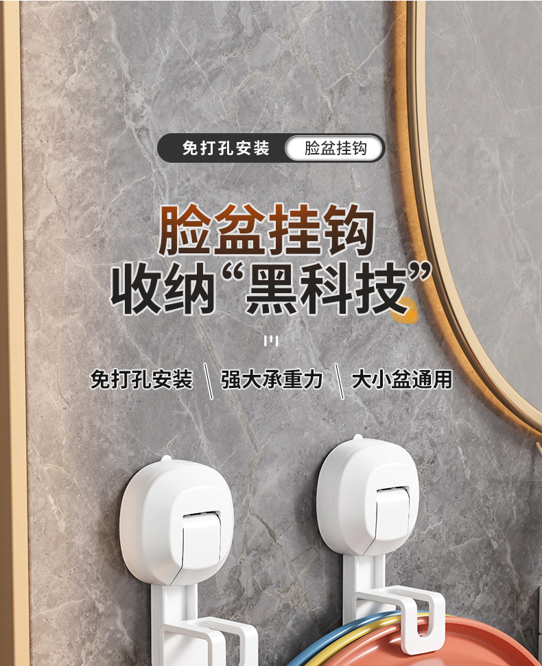 吸盘脸盆收纳架卫生间浴室免打孔壁挂式放洗脸盆子挂钩神器置物架