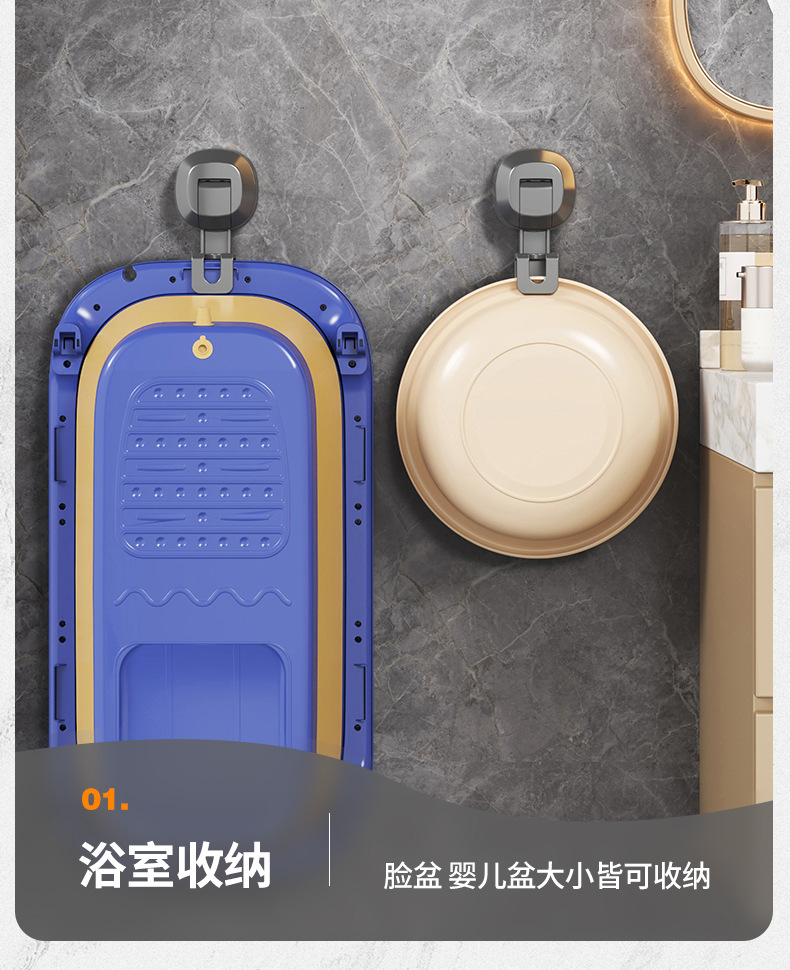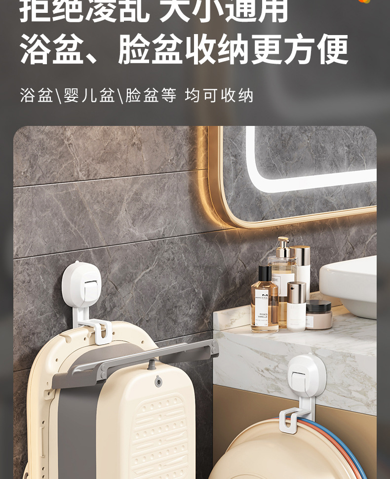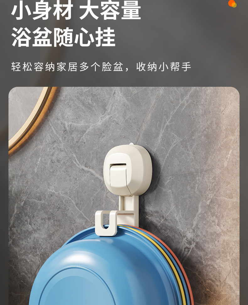 强力吸盘脸盆挂钩免打孔卫生间置物架浴室壁挂式盆子浴盆收纳神器