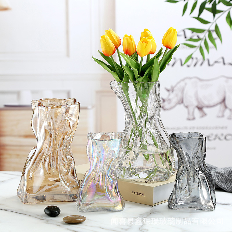 無運直発新型客間ガラス花器食卓花瓶置物客間生け花水晶輝く同タイプの卸売り