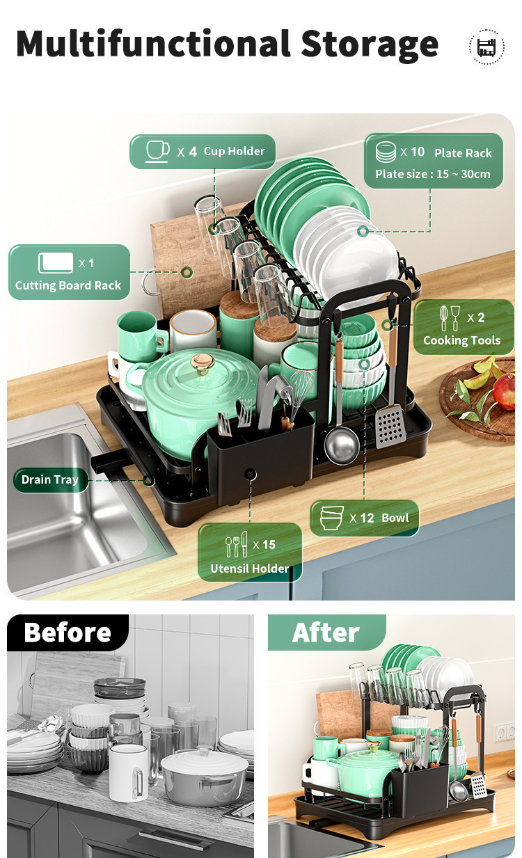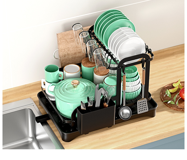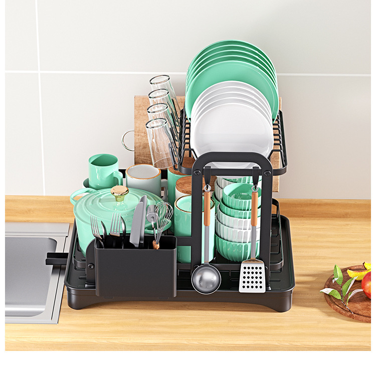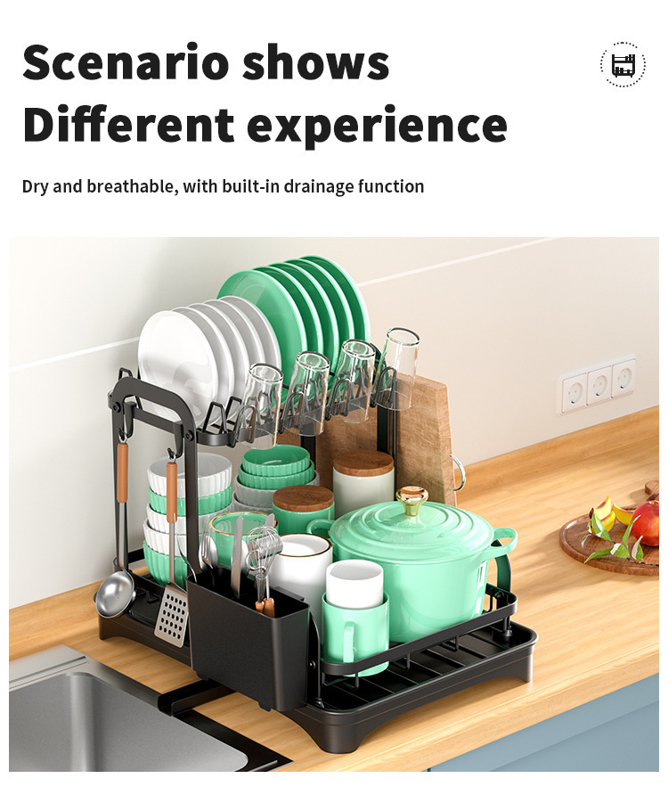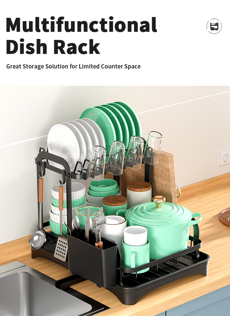 キッチン水切りラック多機能収納ラック鉄製箸立てまな板ラックカウンタートップ食器収納ラック二段式