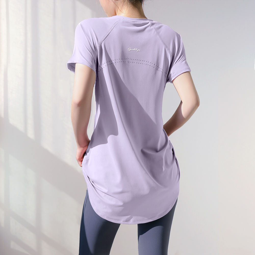 ヨガの服の半袖の夏の新型の中で長いタイプは尻を遮ってやせています。
