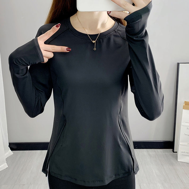 アウトドアスポーツ速乾衣女長袖ヨガランニングトレーニングフィットネス指穴長袖速乾吸汗tシャツ