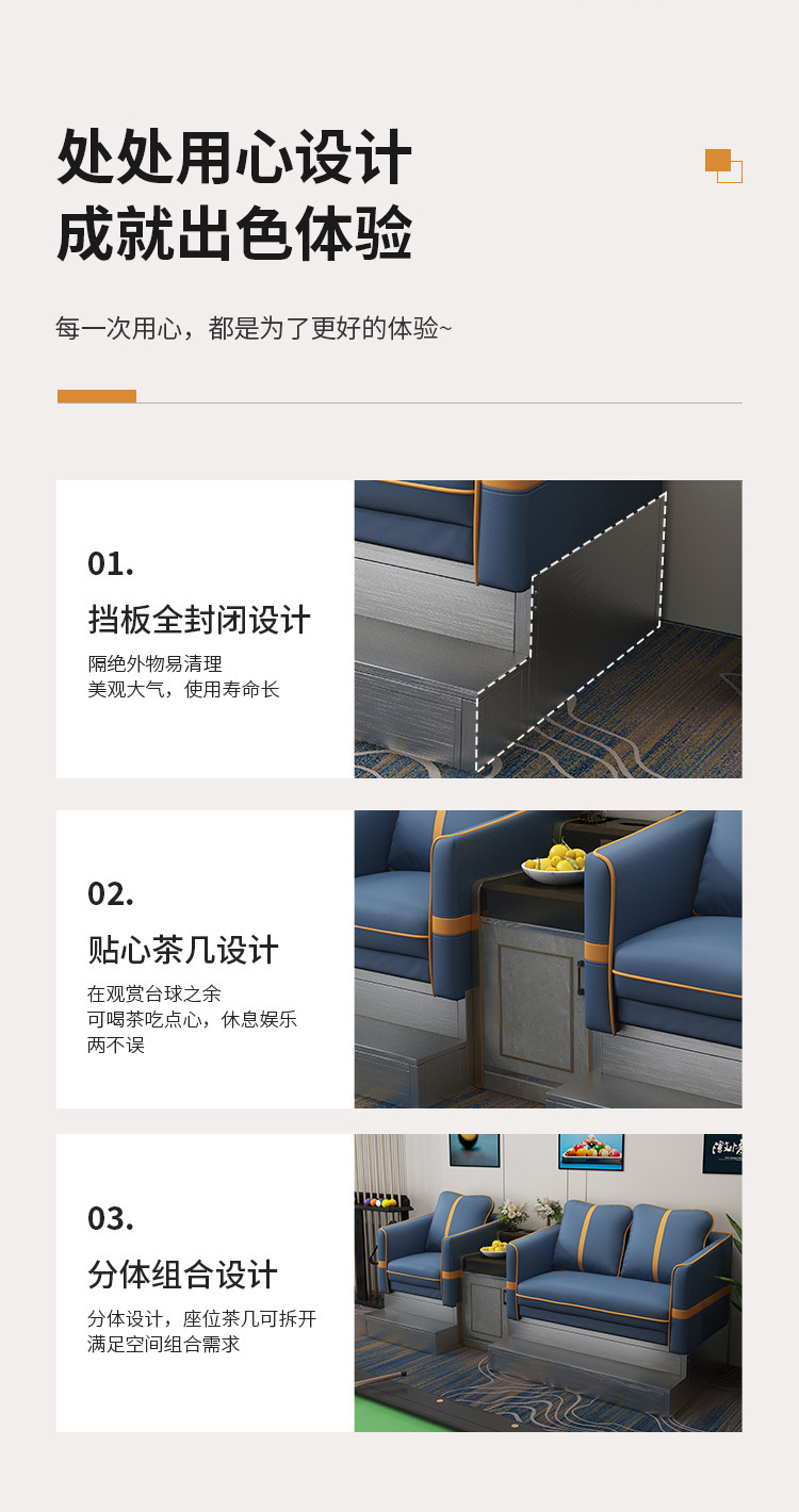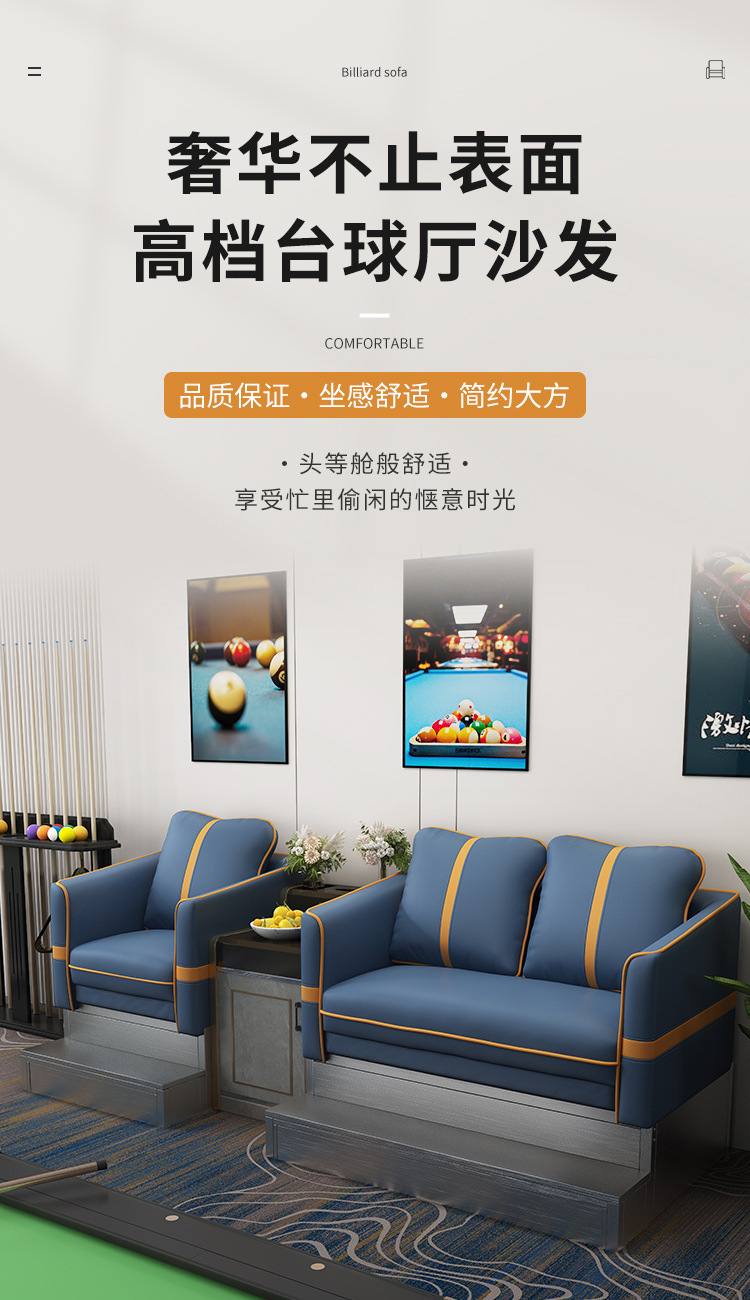シンプルな色合わせのビリヤードソファー高級感ビリヤード試合観戦ソファーメーカービリヤード休憩エリアソファー