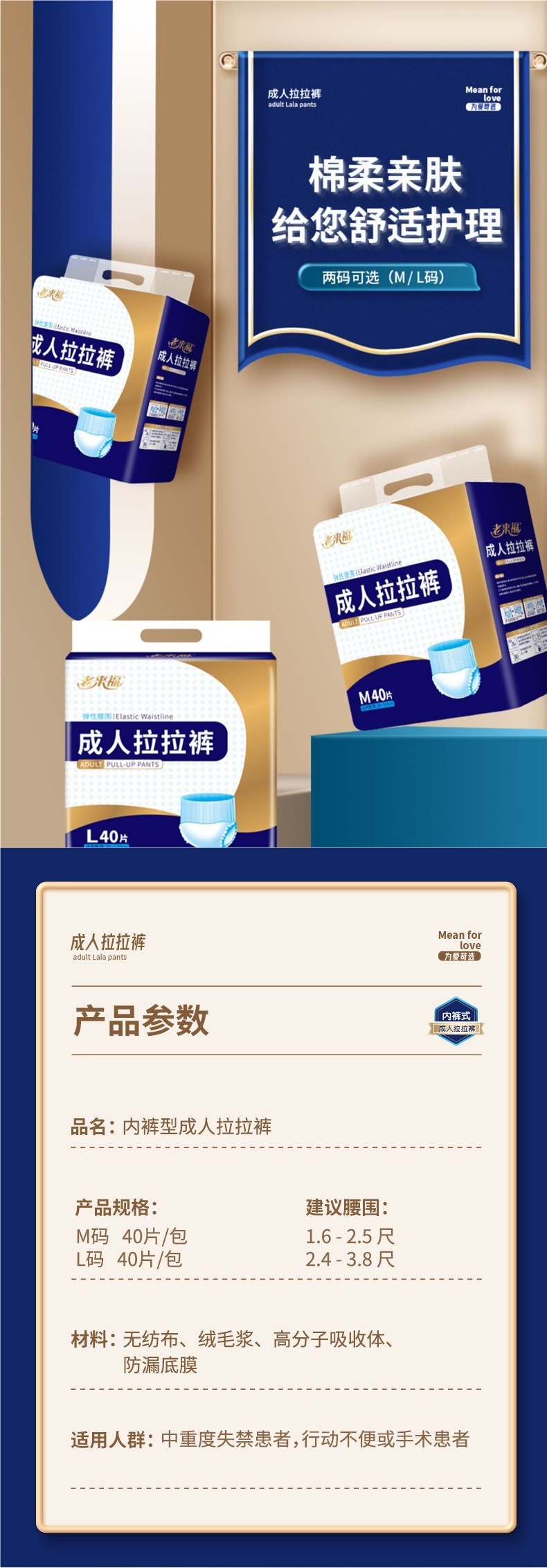 老来福成人ズボン老人用尿不湿下着式紙おむつ女性男性高齢者40枚