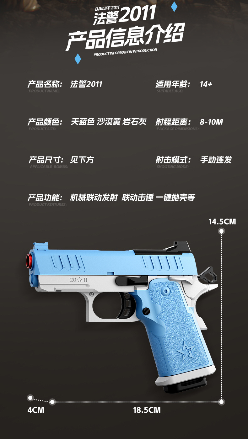 跨境法警2011玩具枪连发抛壳发射软弹枪法警2011机械连发回膛批发