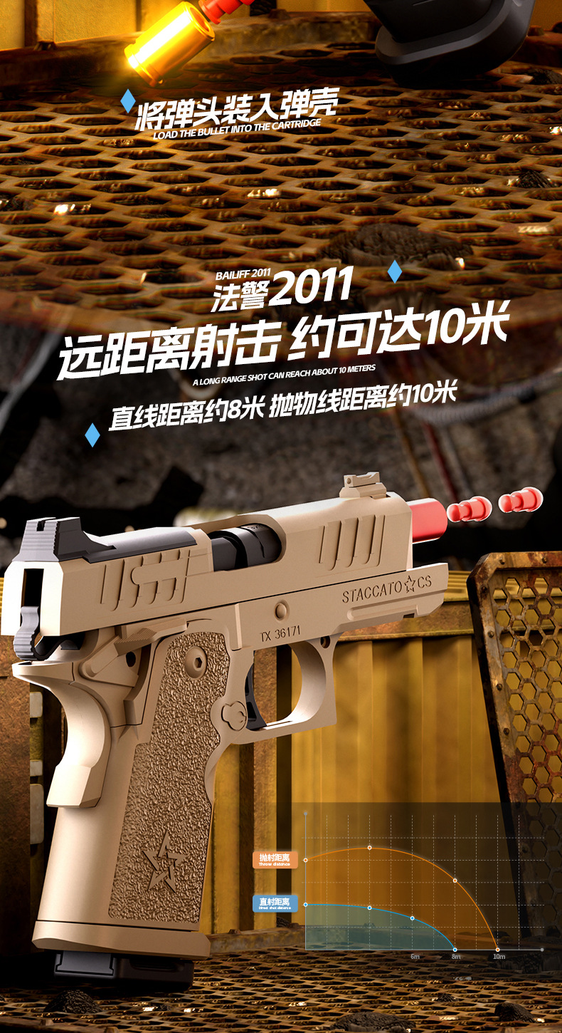 クロスボーダー玩具銃ソフト弾彫刻レトロ1911機械連発投げ殻ソフト弾銃少年科教模型卸売り