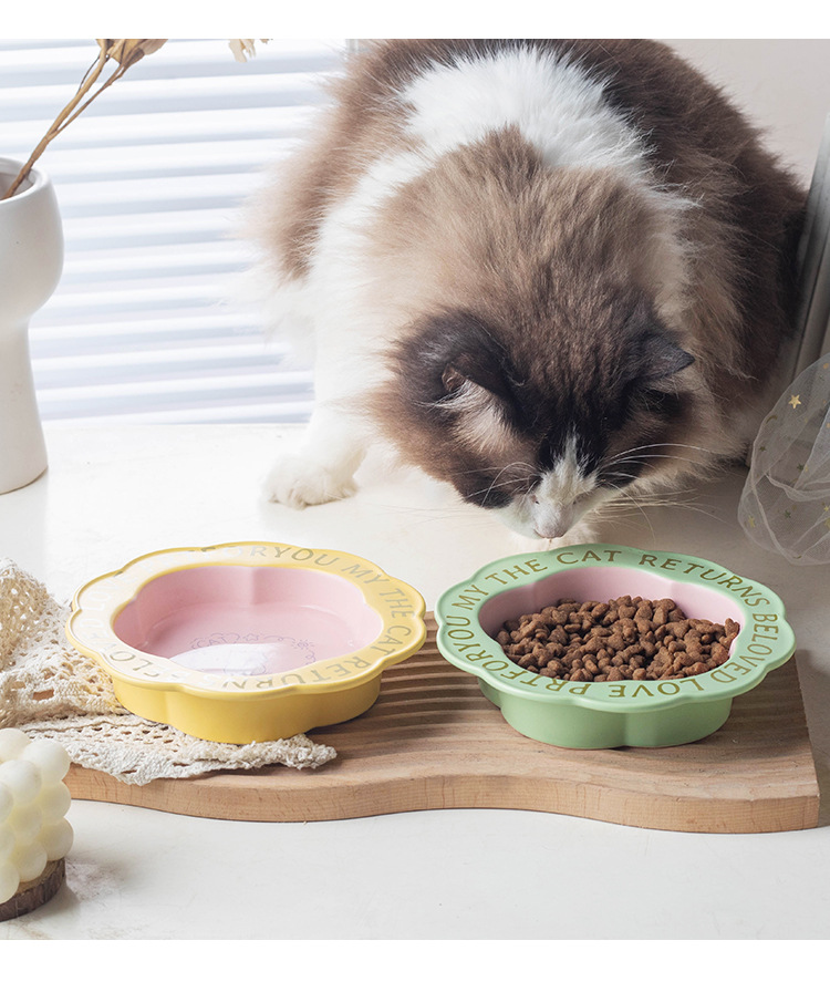 陶磁器の猫の碗は頚椎の棚を保護します。