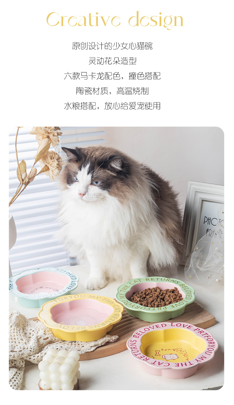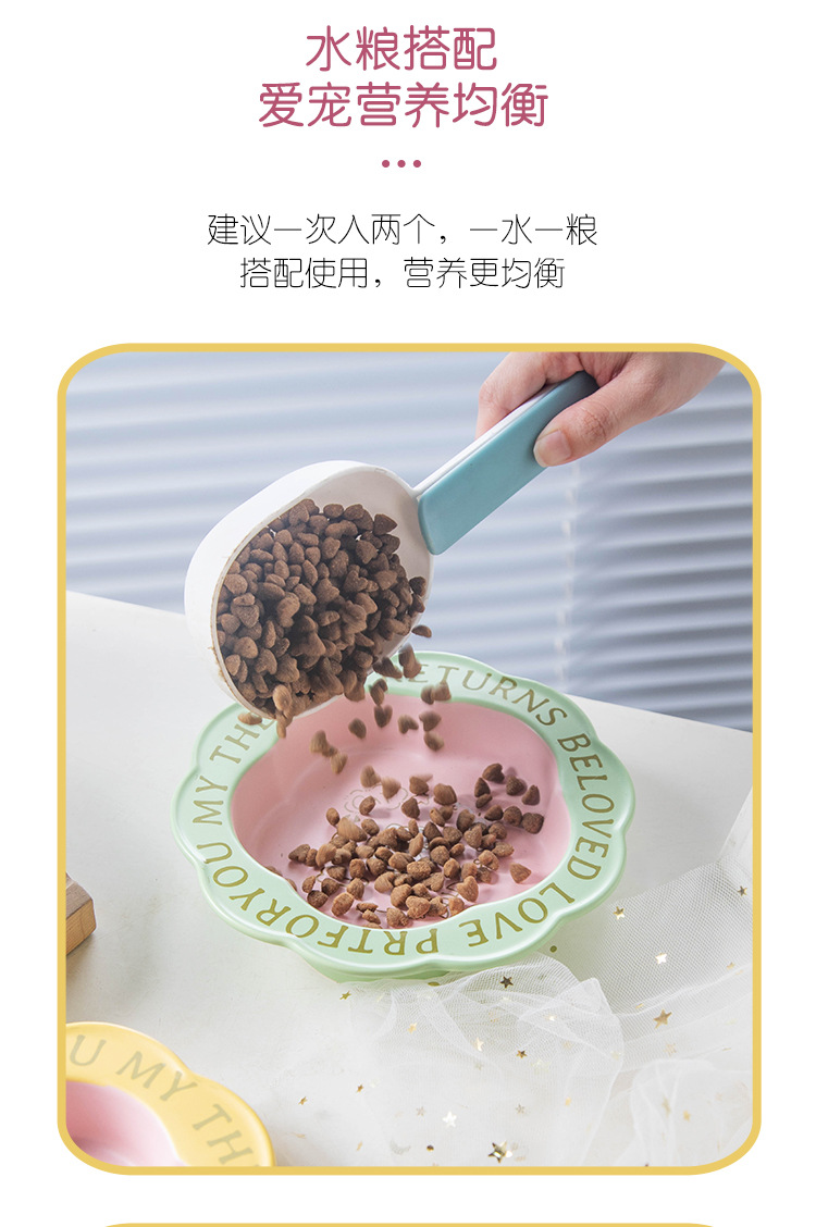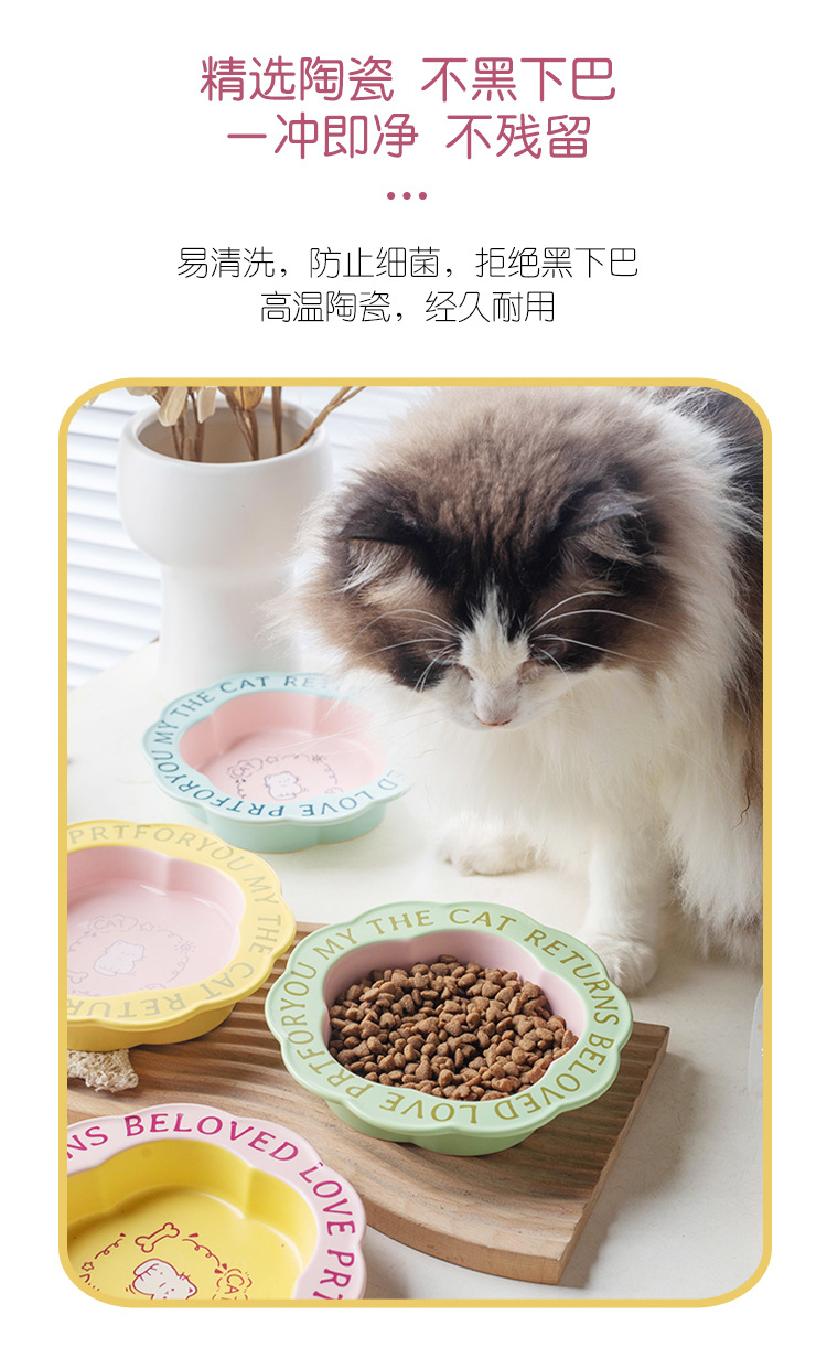 奶油风陶瓷猫碗防黑下巴大口径猫粮碗狗碗水碗防打翻护颈宠物用品