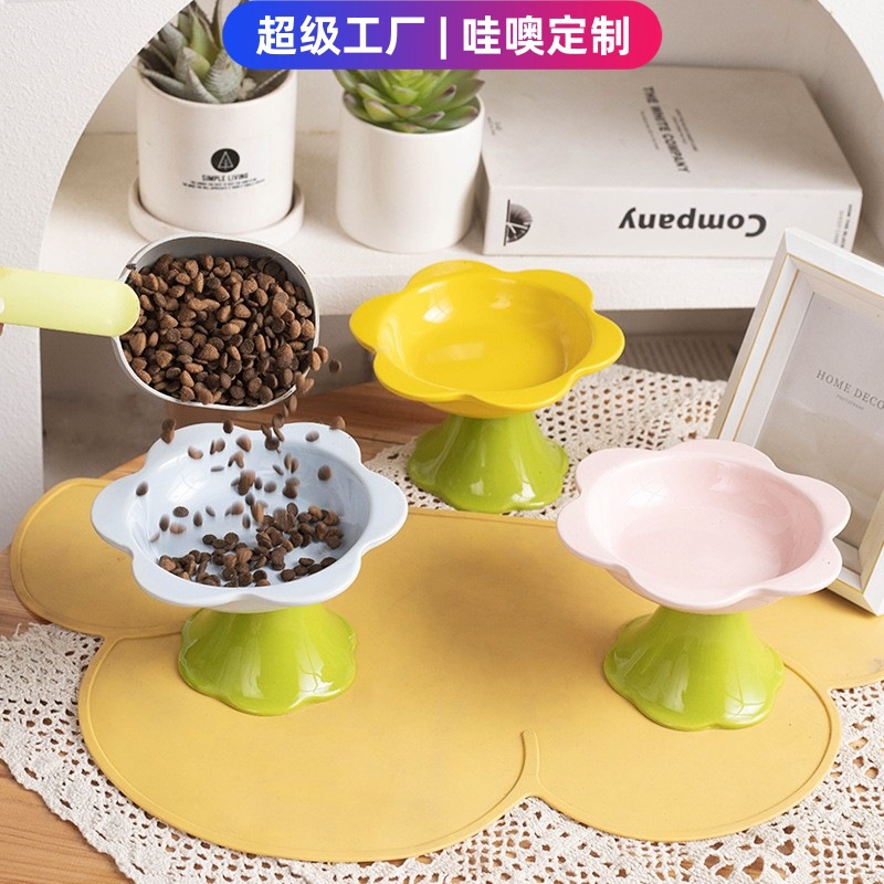 わぁ、花の猫の碗の陶磁器の高い足の猫の食事のたらいはひっくり返して頚椎の0食品の皿の缶詰の碗の猫の用品を保護します。