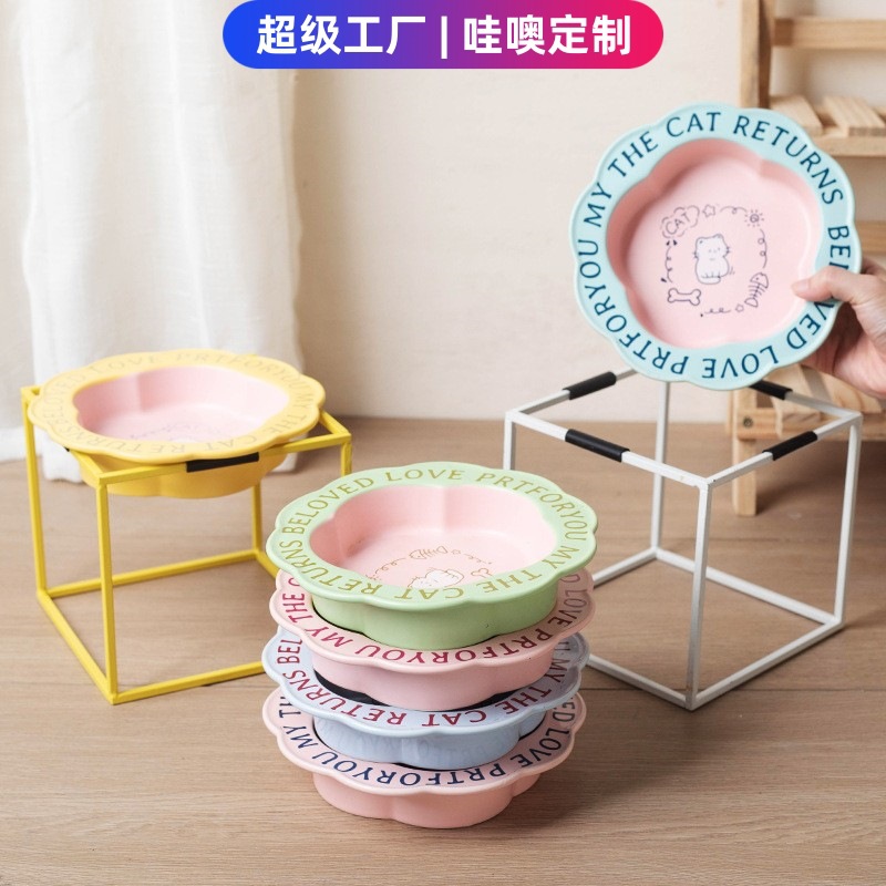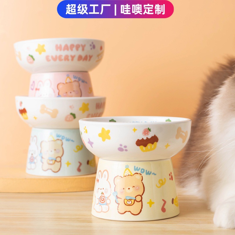 韓国 bd ネックプロテクター高足犬猫フードボウル飲料ボウルセラミック猫ボウル抗黒あごペットボウル空飛ぶ円盤ボウル本物
