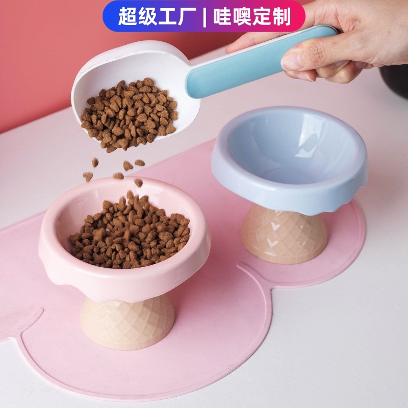 セラミックスローフードボウル、背の高い猫ボウル、首を保護し、転倒しにくい、犬の窒息防止ボウル、ペットボウル、クロスボーダーキャットフードスローフードボウル