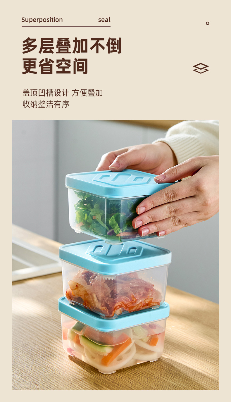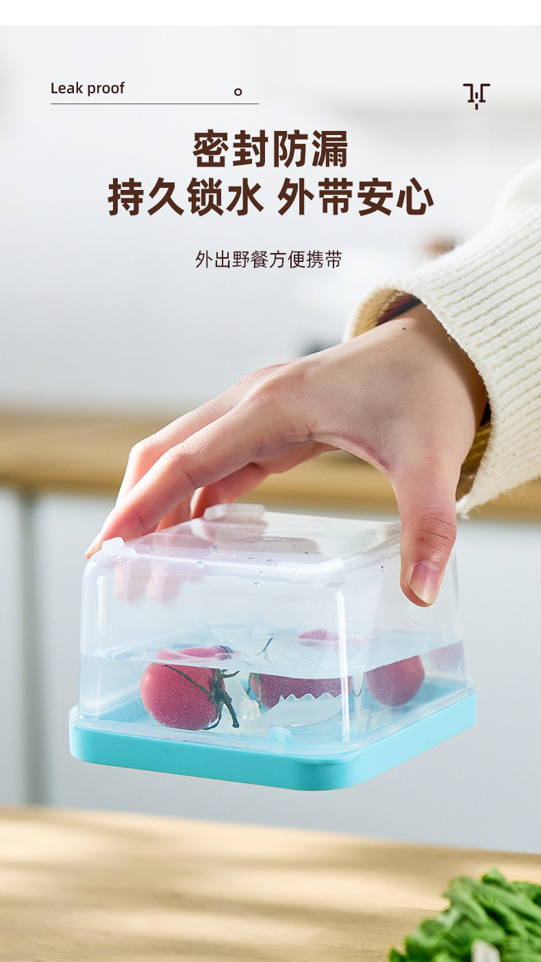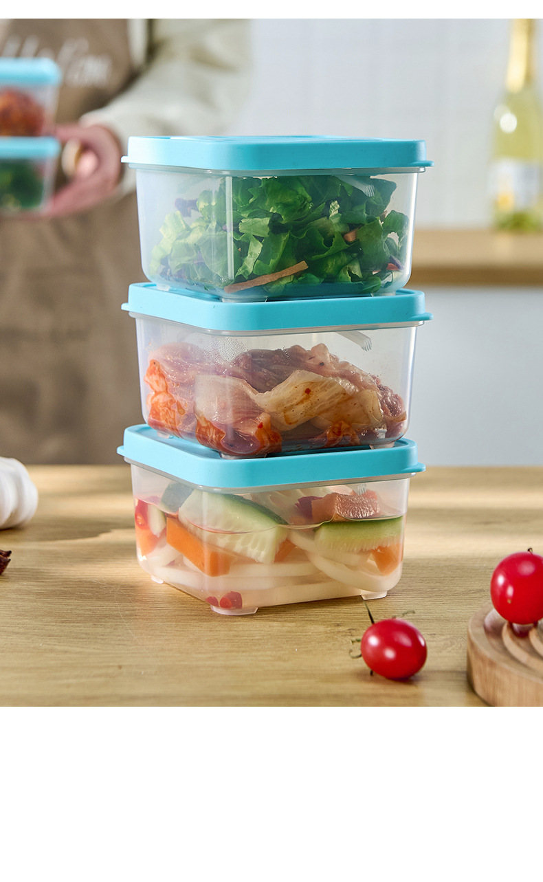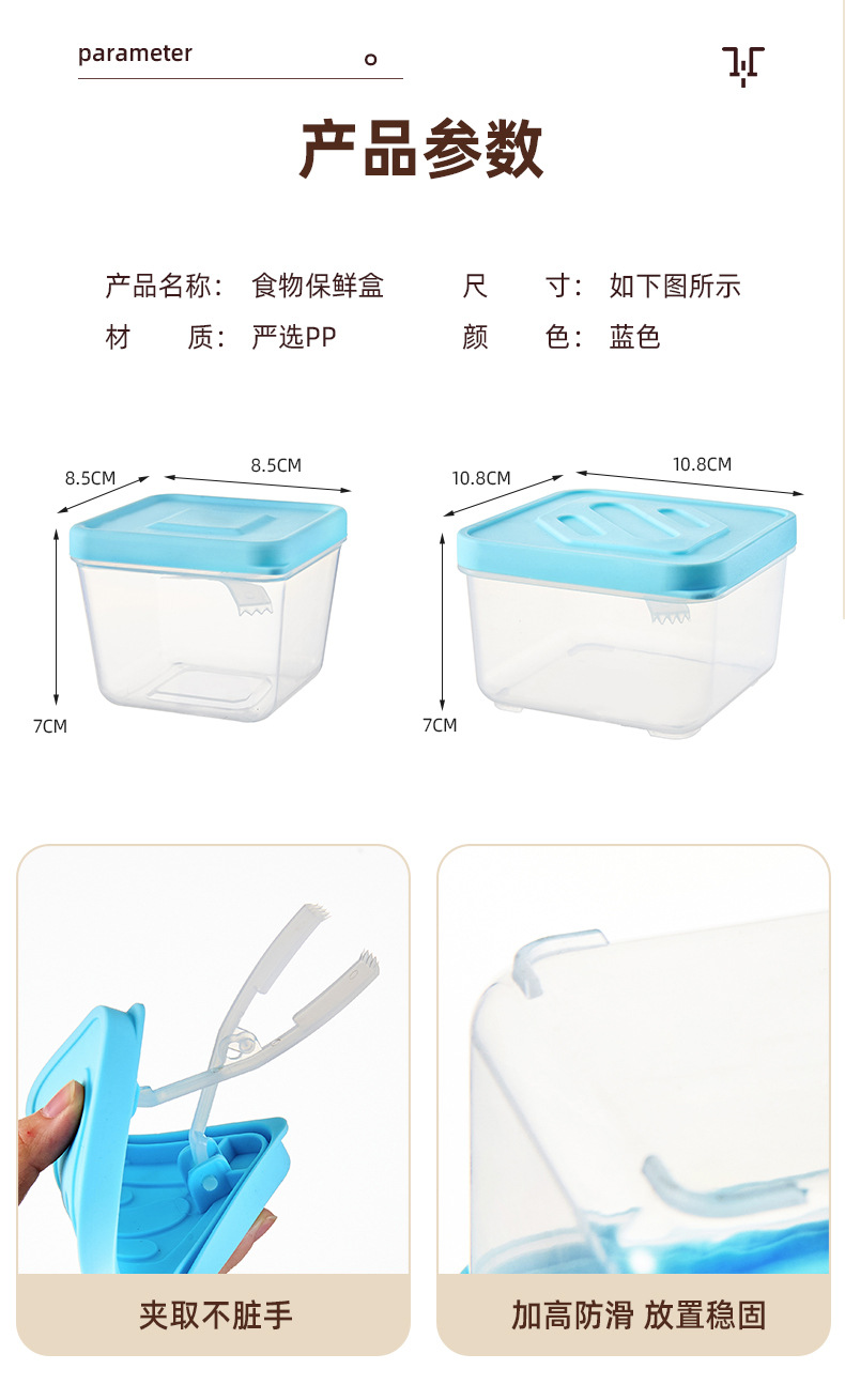 • 商品名称:加高防滑可叠加盖子带夹保鲜盒 微波炉加热饭盒泡菜盒--小号蓝色