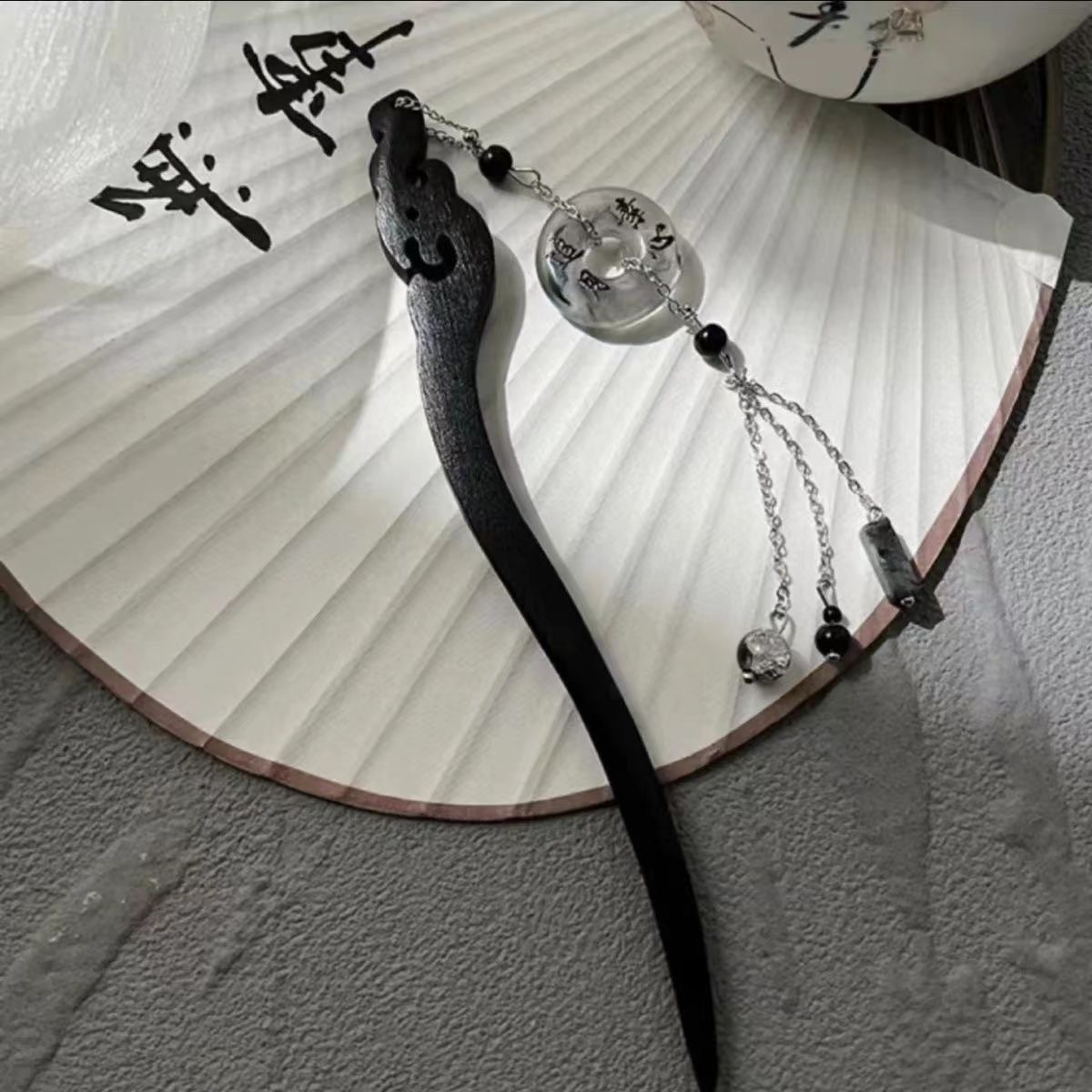 新中国式流蘇古風黒檀木のかんざしのチャイナドレス