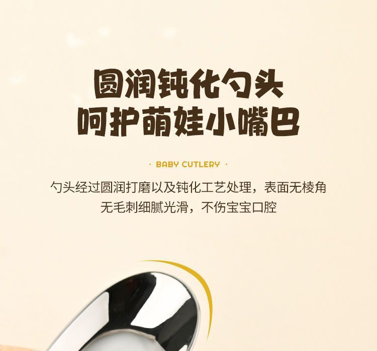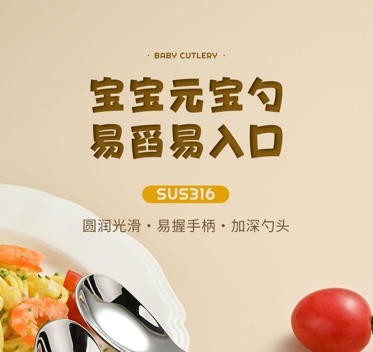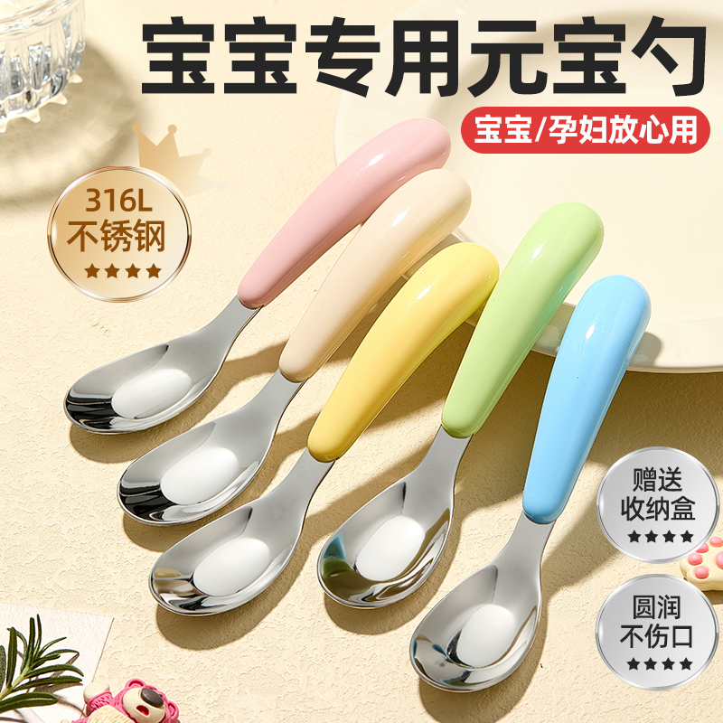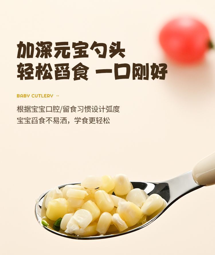 高颜値ステンレススプーン家庭用児童元宝スプーン宝食器給餌神器ベビースプーン食事スプーン