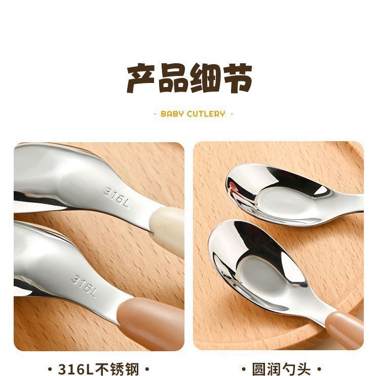 316ステンレスアニメ元宝スプーンウサギ熊萌趣味児童食器セット携帯赤ちゃん補助スプーン