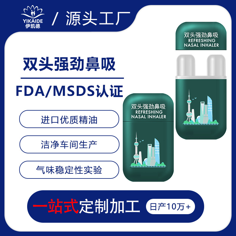 強化鼻吸いスティック、二重穴鼻通気、眠気を和らげ、目覚めを促す吸入可能な冷却ミントエッセンシャルオイルスティック OEM/ODM