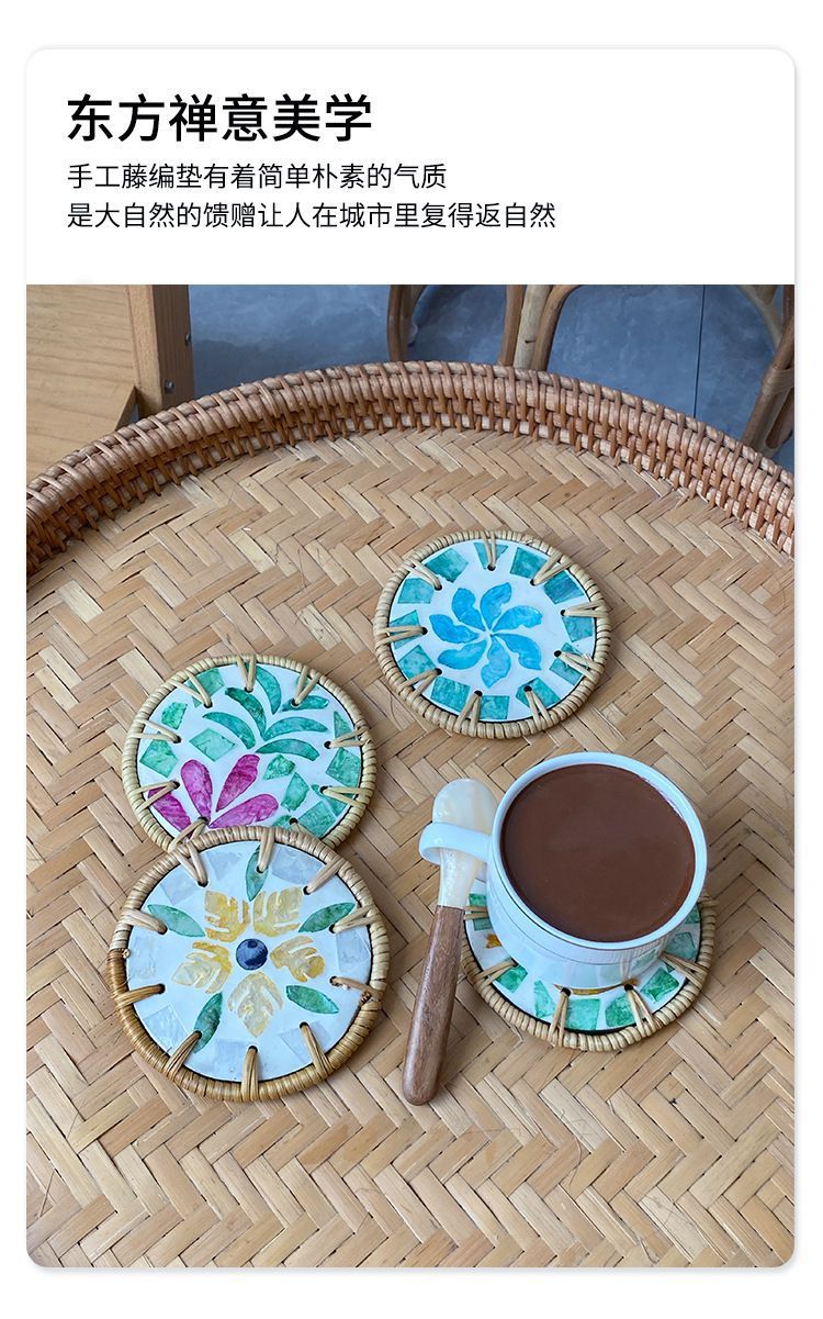 ベトナム籐編みコースター貝殻手作りコースター円形家庭用デスクトップパーマ断熱マットins風和式食事マット