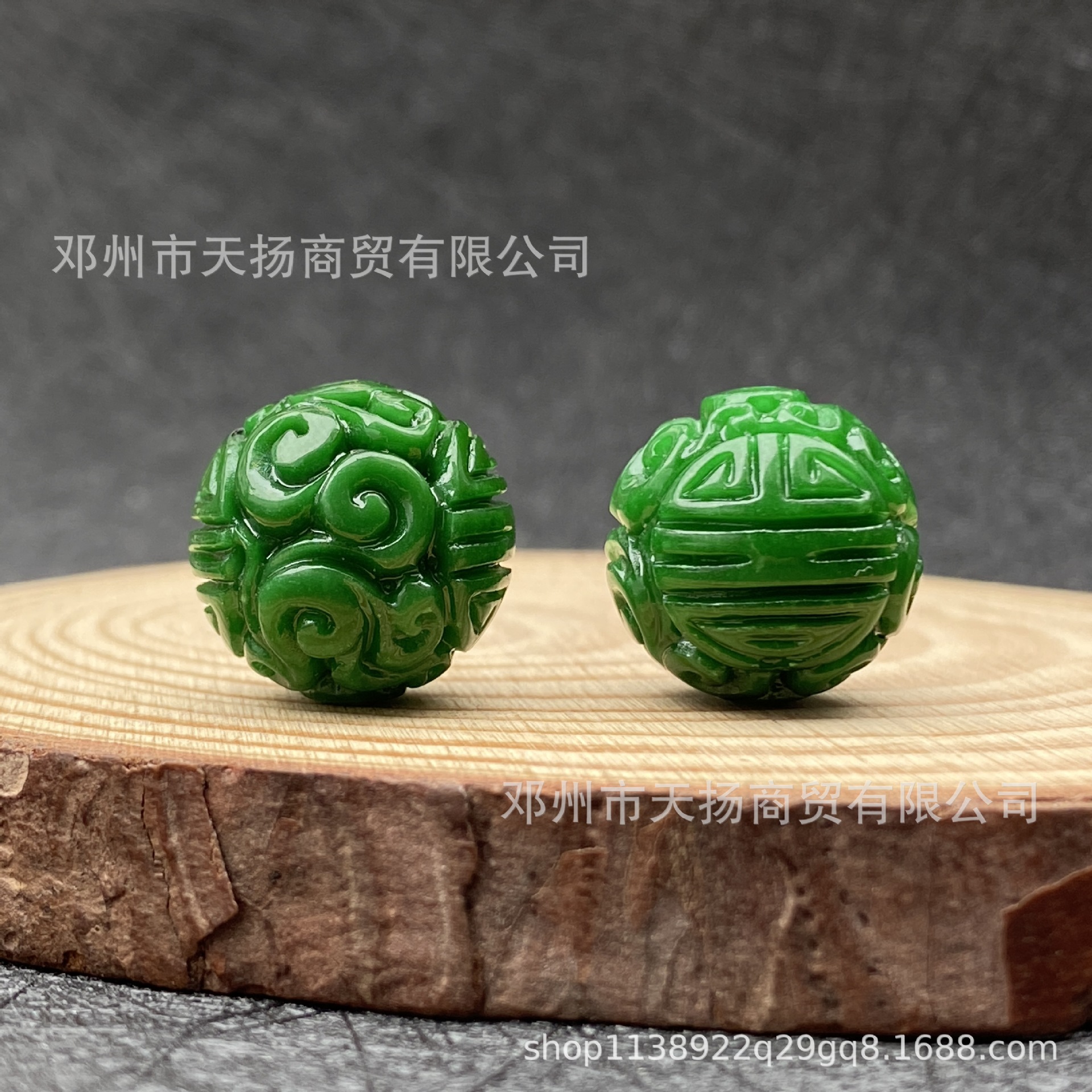 ミャンマー翡翠A品乾青満緑彫刻花福寿ドラゴンボール彫刻DIY手串編みアクセサリー文遊珠