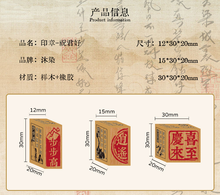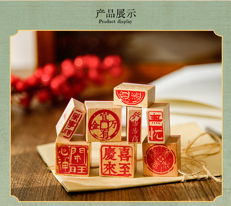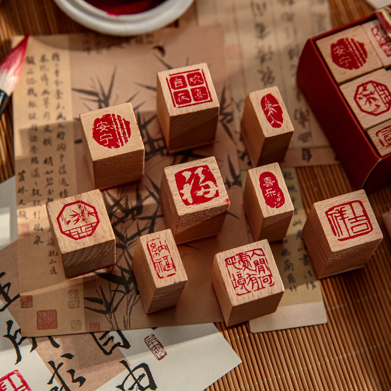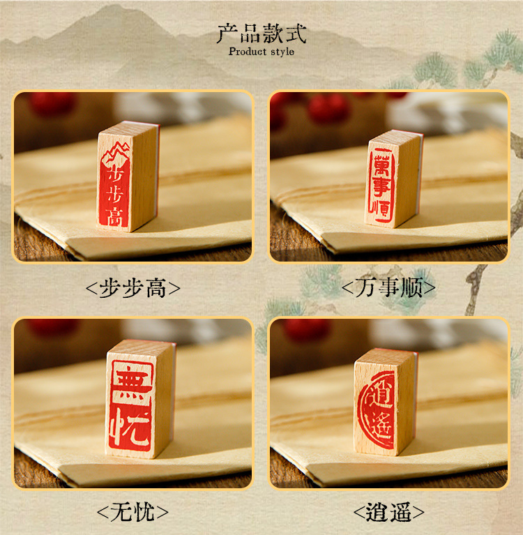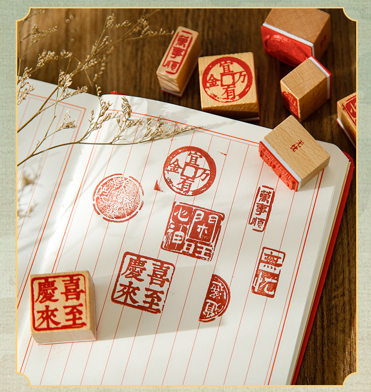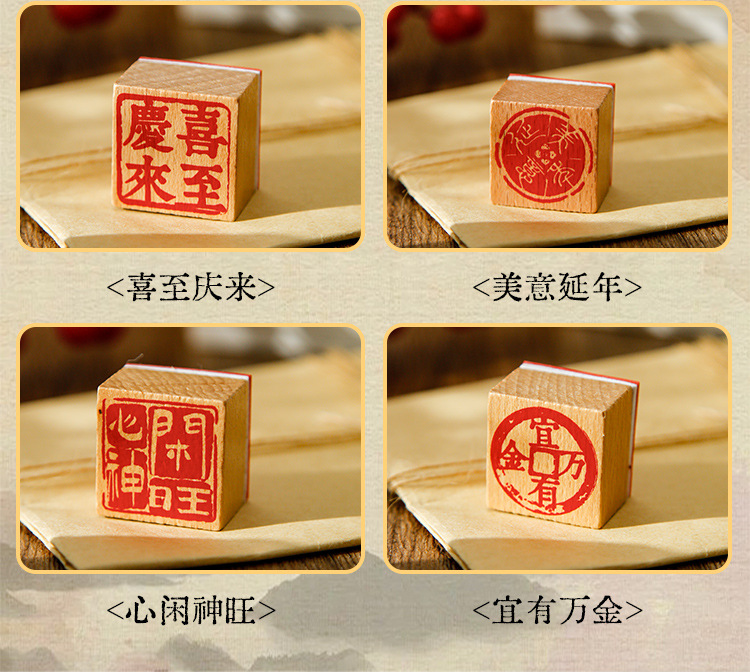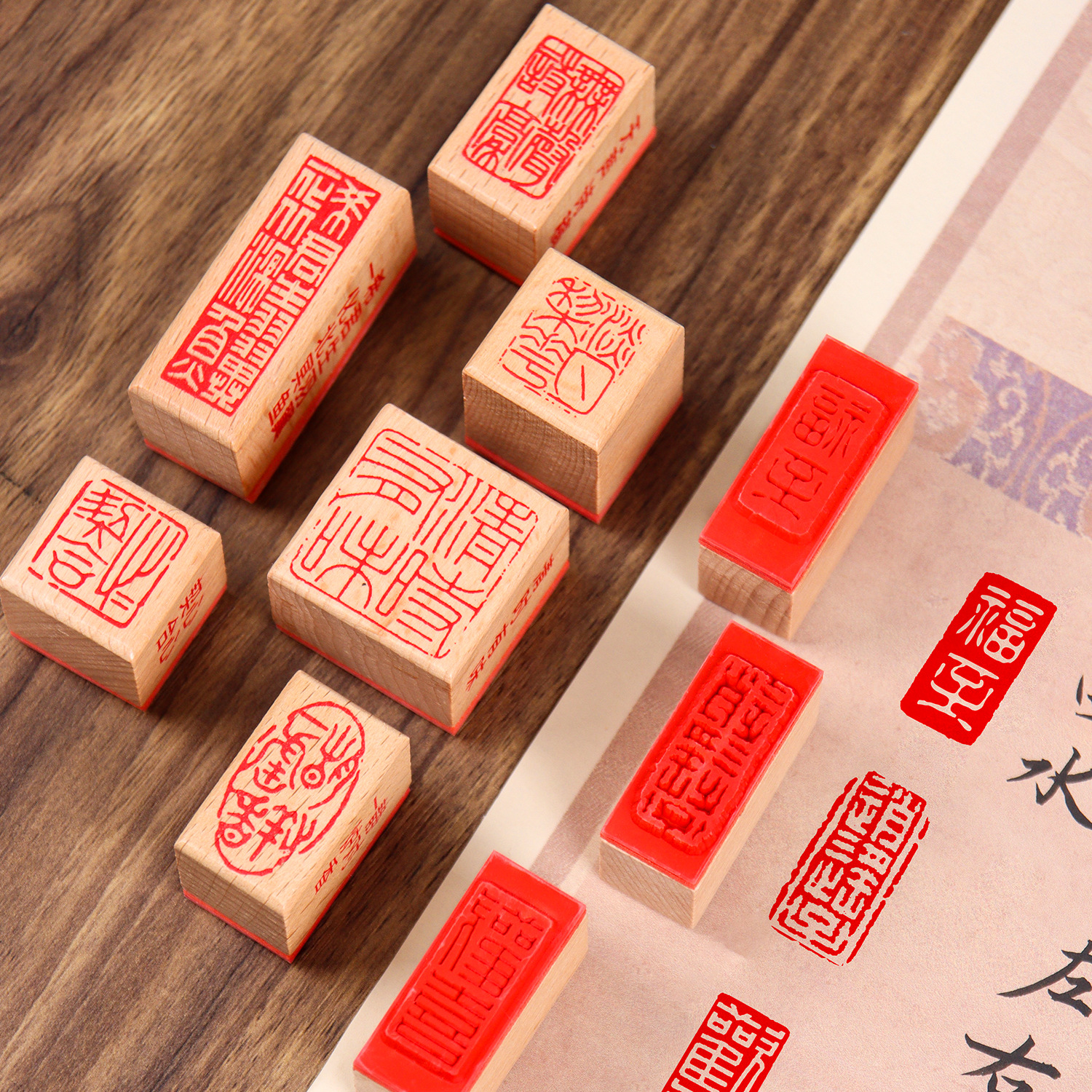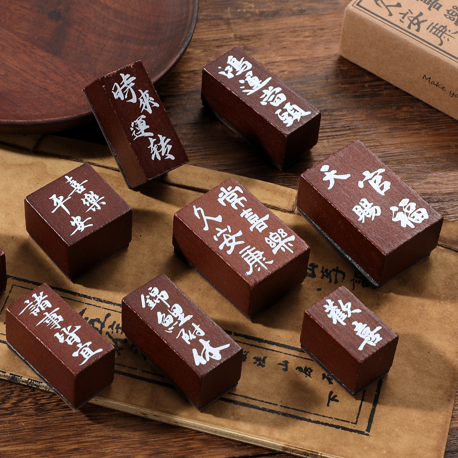 沐染手帳印鑑祝君好木質祝福書画篆刻章diy文字組み合わせ創意小印鑑