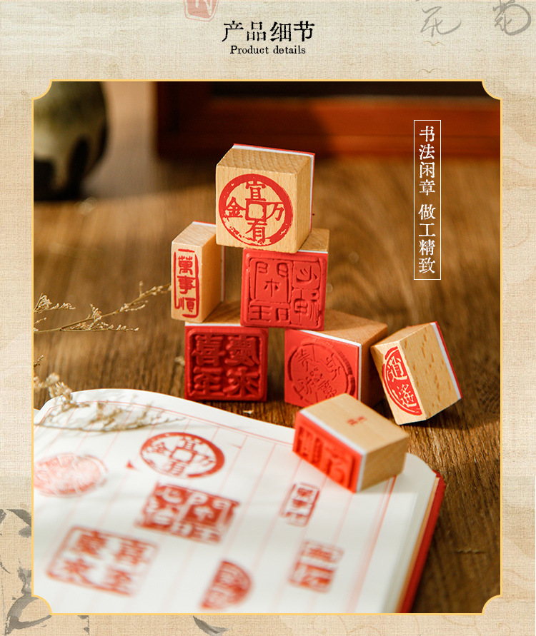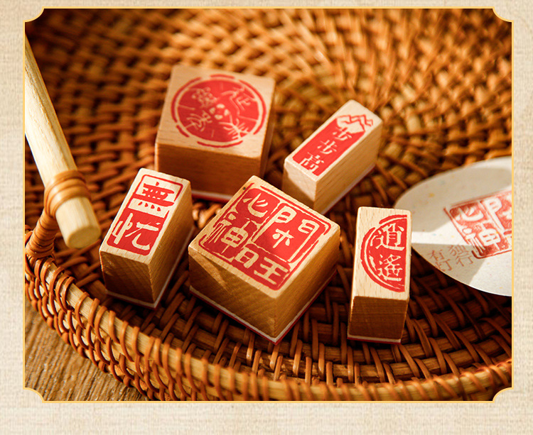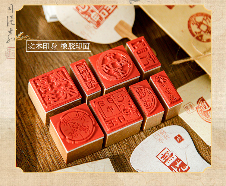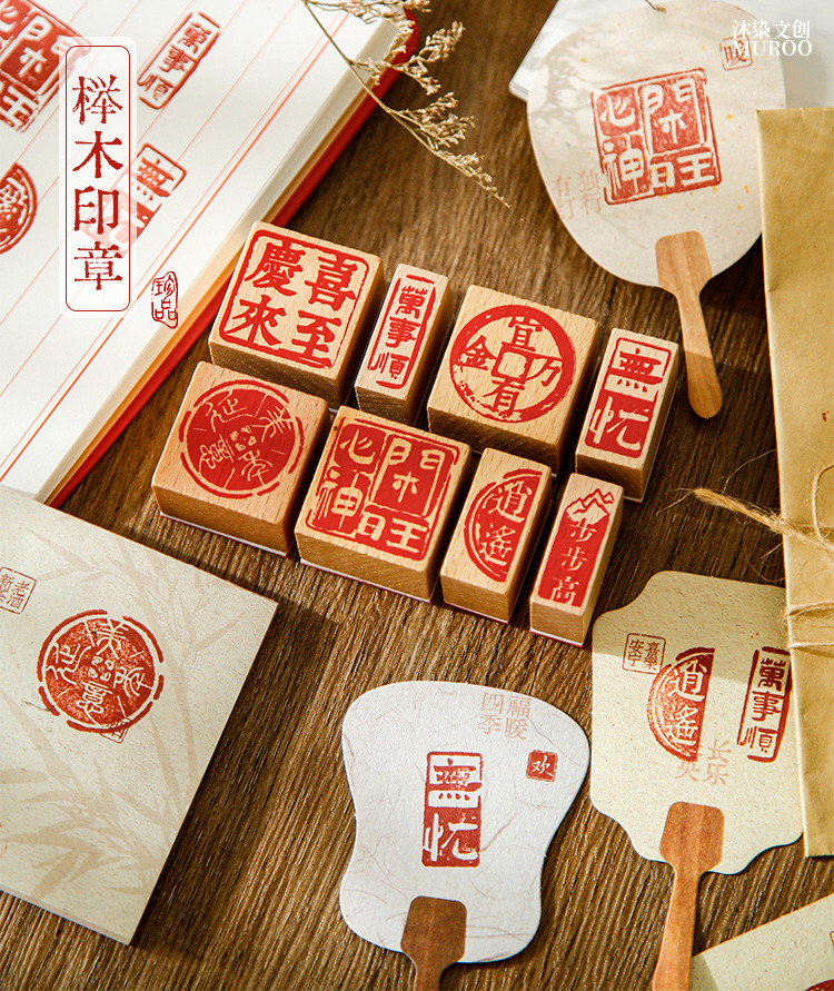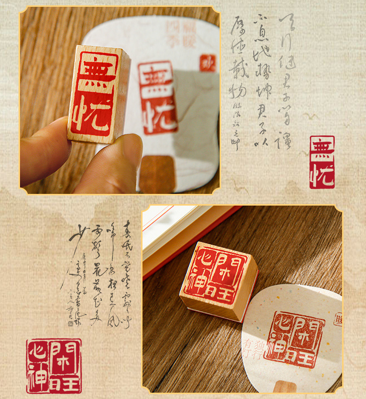 沐染古風手帳印鑑木質復古風景書画篆刻章腰章趣章国画創意小印鑑