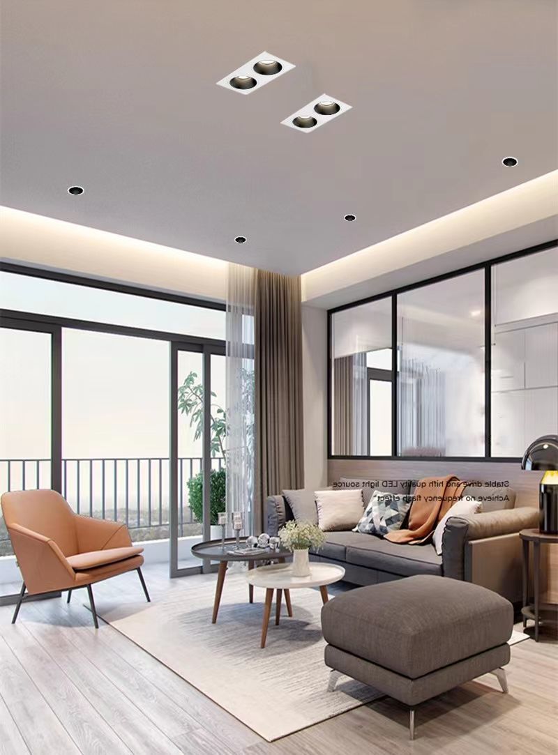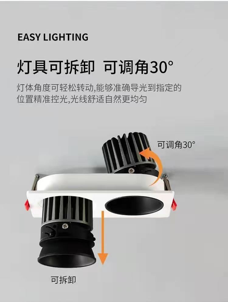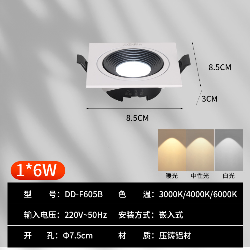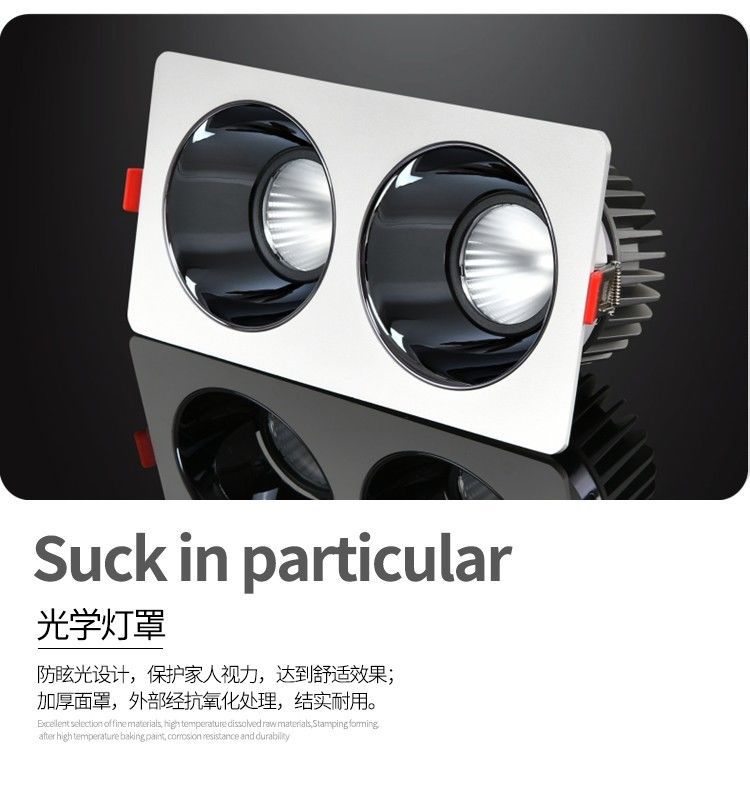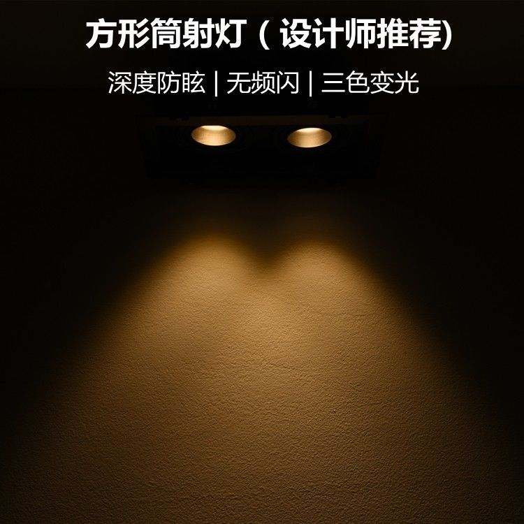 箱明装ダウンライト無主灯グリルライトLEDコブ斗胆灯LED家庭用リビング照明四頭角型