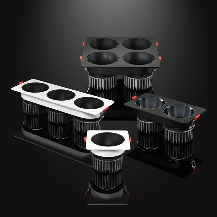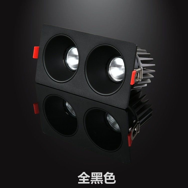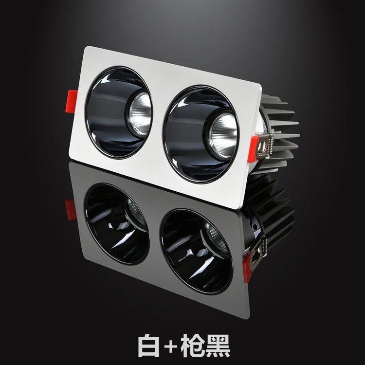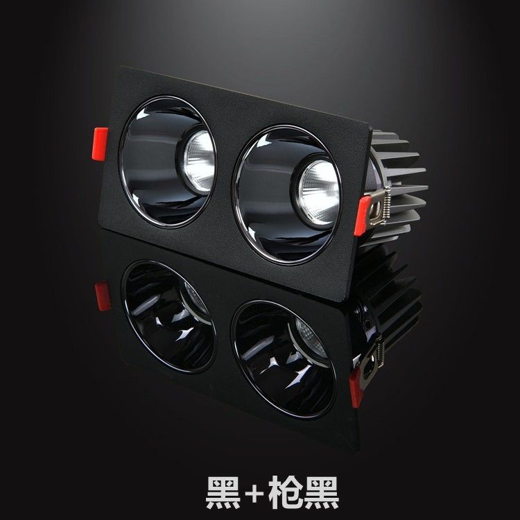 黒グリル単頭スポットライト角型天井灯斗胆灯三頭豆胆灯埋め込み型LED白色二頭アルミ