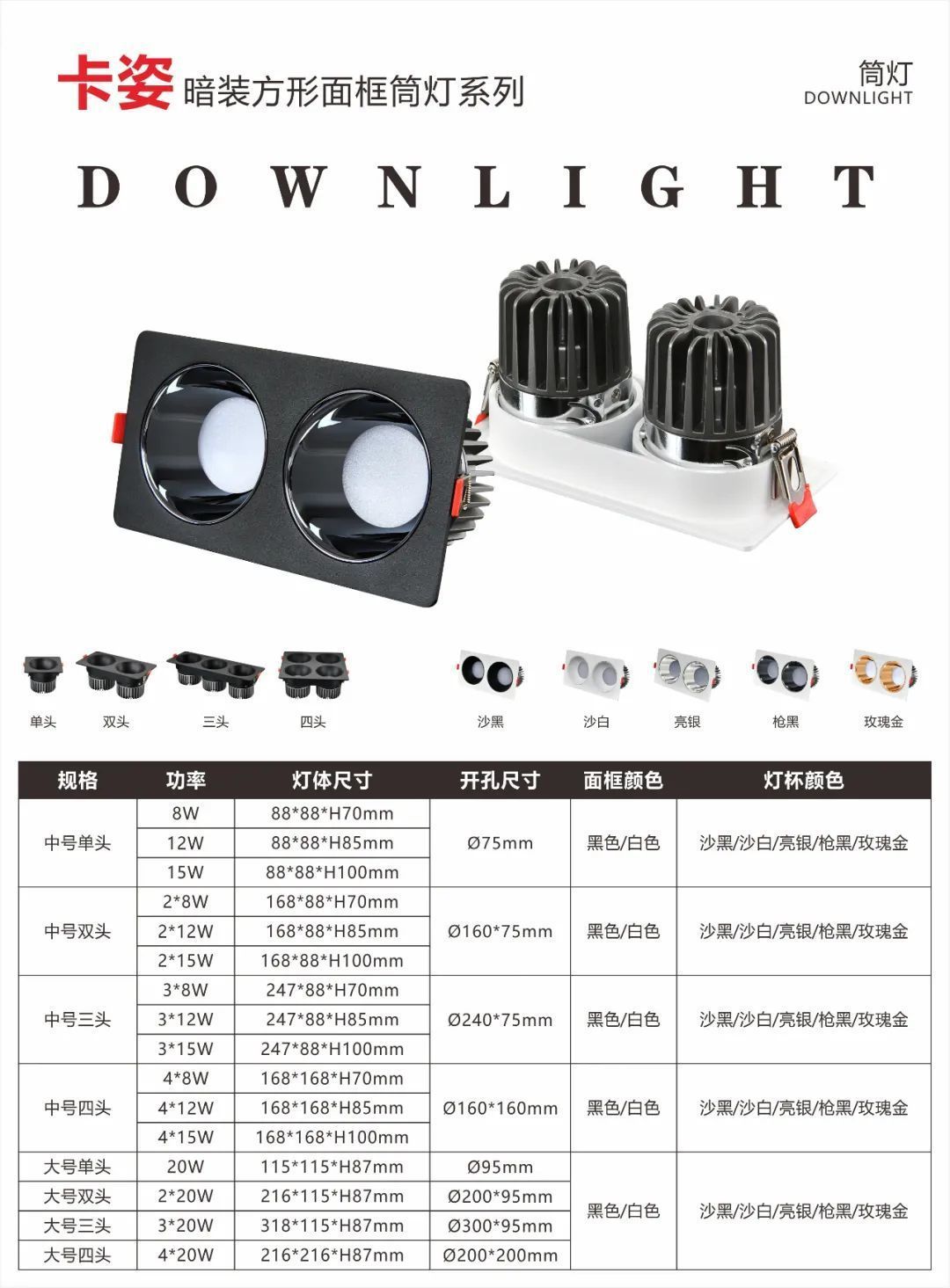 ランプ15角型ダウンライト天井グリッドダブルヘッドledグリルライトグリルライト15衣料品店白色光