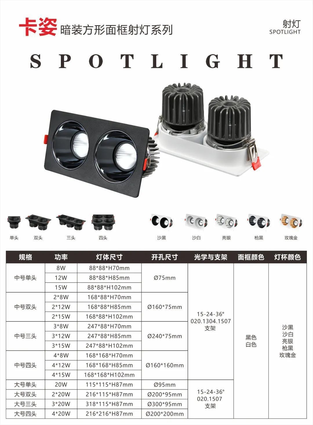 ランプスポットライトアルミ方通天井角型方通ダブルヘッドランプob商用店舗c斗胆灯グリルledその他