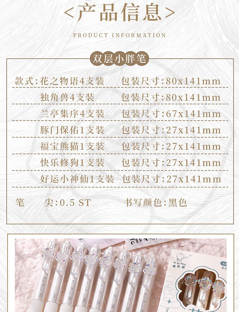 リフィルの色 二重層のぽっちゃりペン - Lanting Collection の序文,二重層のぽっちゃりペン - 花の物語,二重層のぽっちゃりペン - ユニコーン ドリーム