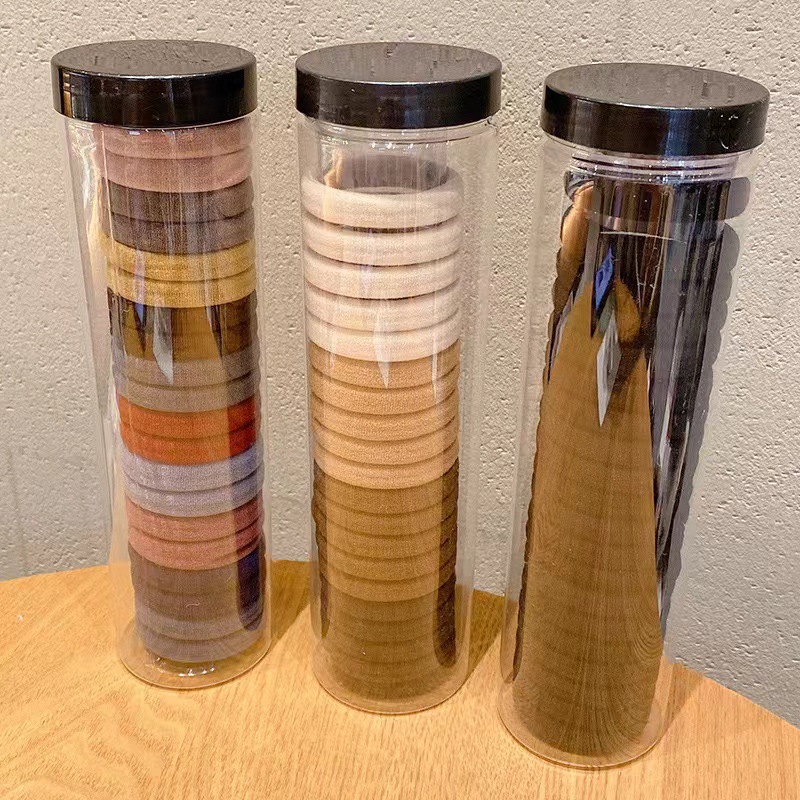 缶入りのシンプルな髪輪の高弾力馬尾の皮筋は髪を刺して太い髪のひもの女性の夏に首を縛ります。