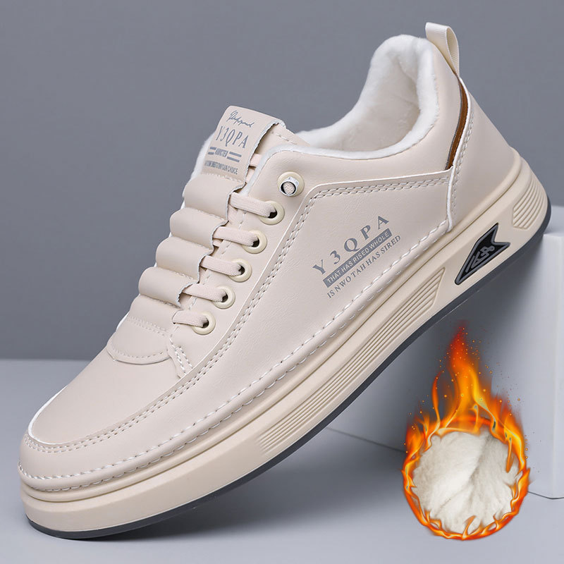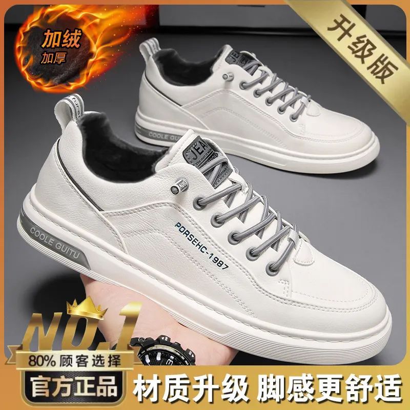 冬季加绒板鞋防寒保暖男士时尚百搭小白鞋防滑耐磨一脚蹬皮面潮鞋