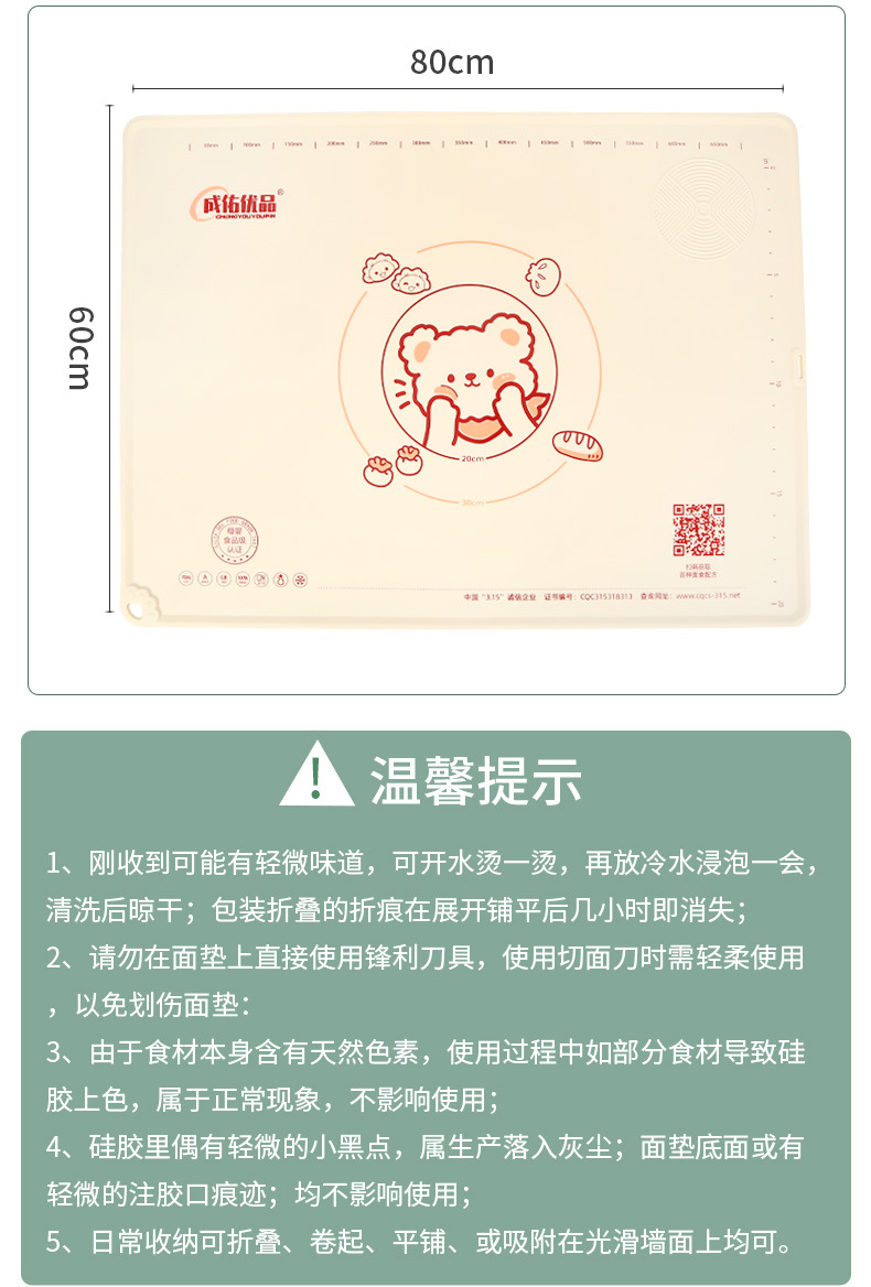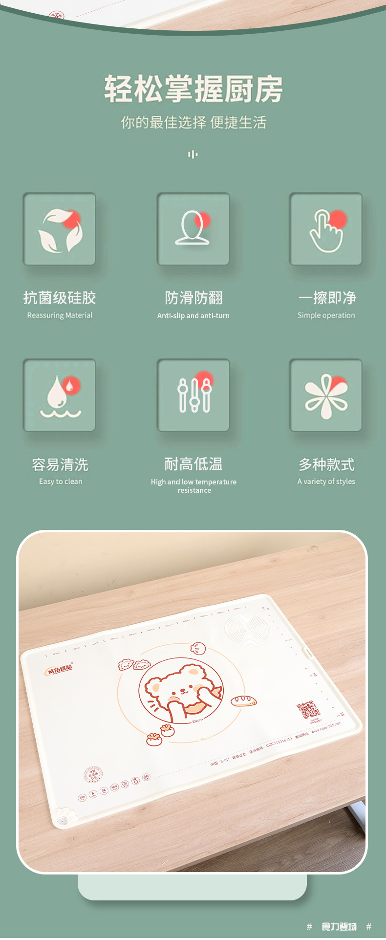 シリカゲル揉み面マット家庭用キッチン厚手食品級シリカゲルまな板綿熊シリーズ焙煎と麺面マット